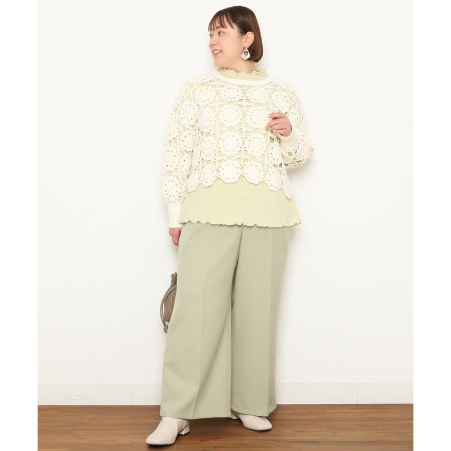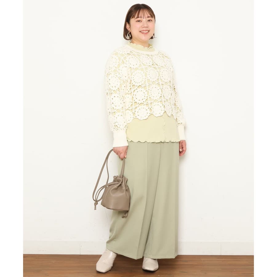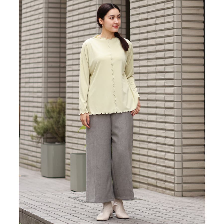 柔らかなカラーが春らしいすっきり見えワイドパンツです。
