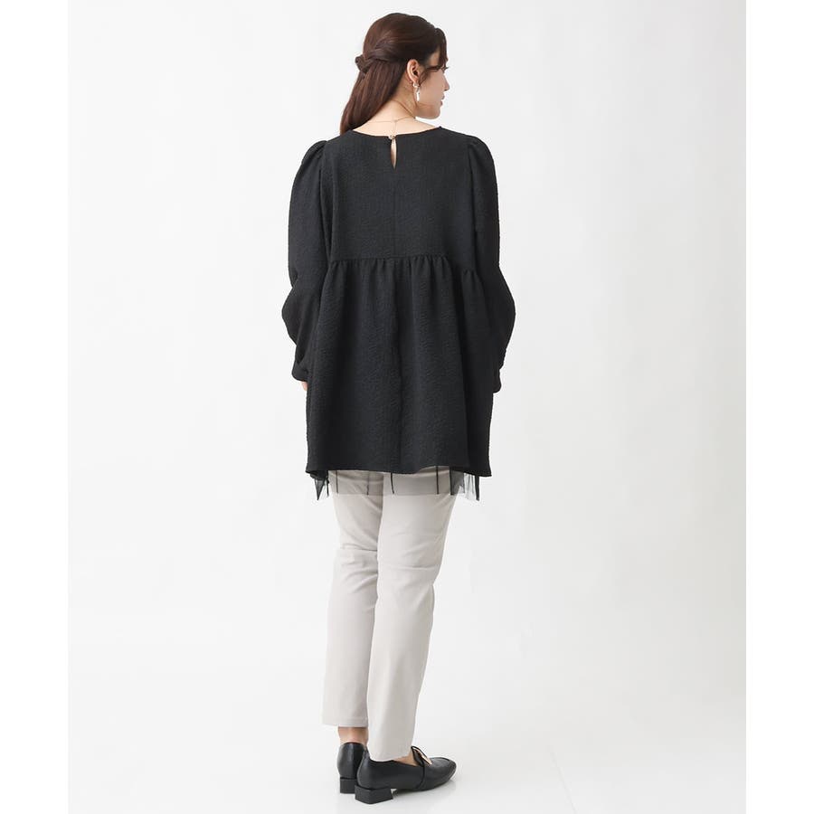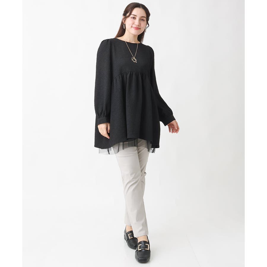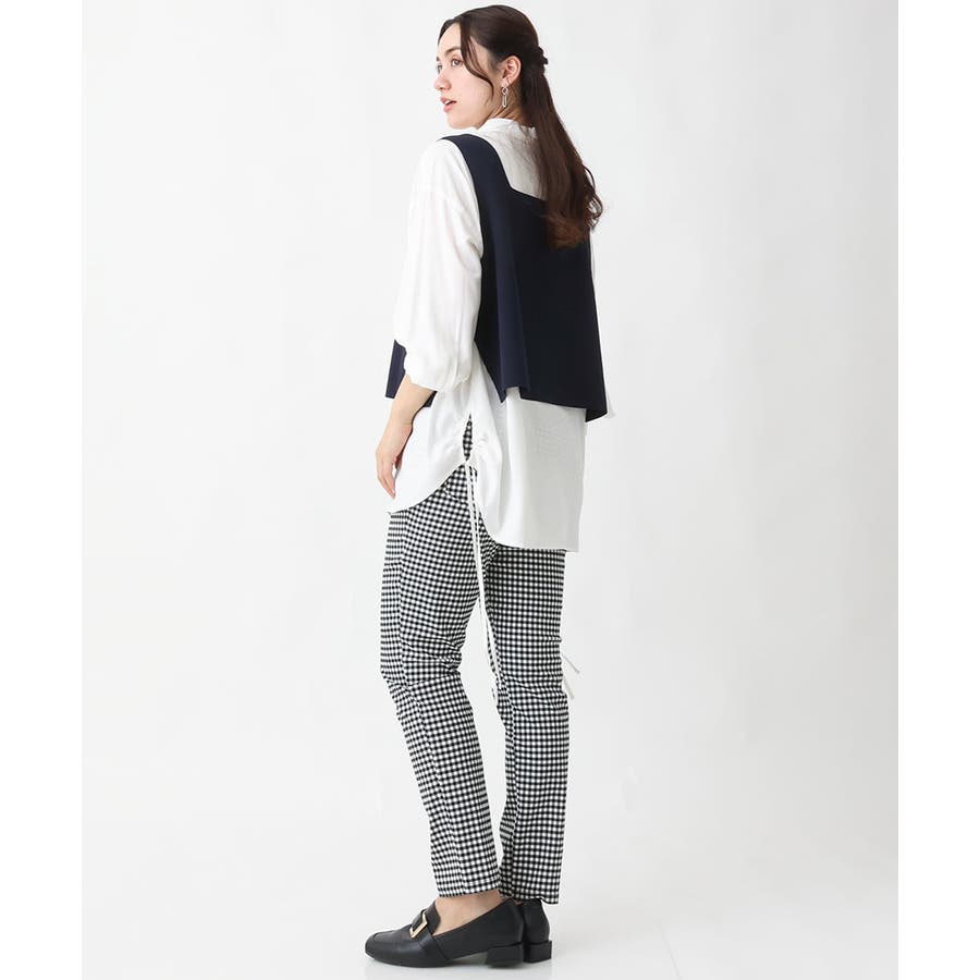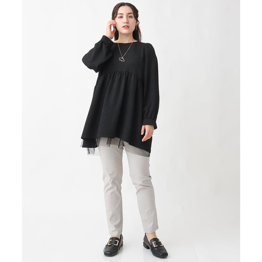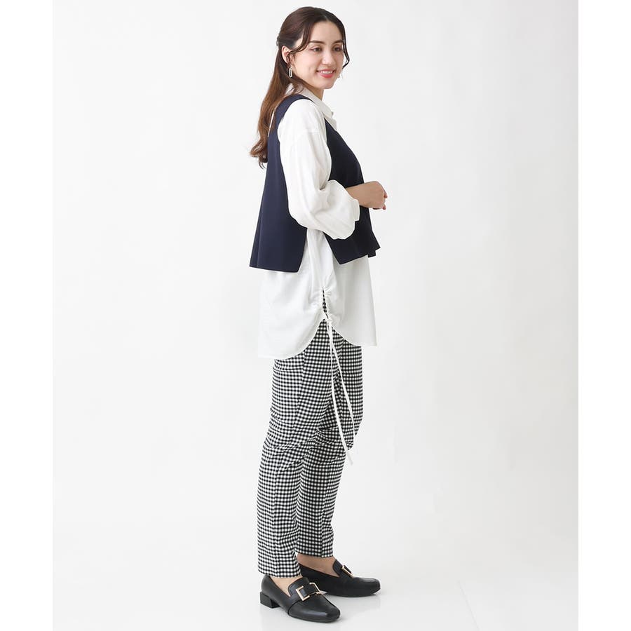 チュニックやシャツワンピースなど着丈が長めのアイテムと合わせてもスッキリ着られるのでおすすめです。