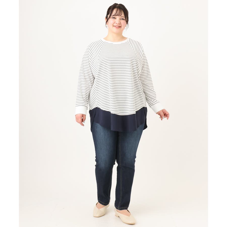 チュニックなど長めのトップスと合わせてもすっきり着られます。