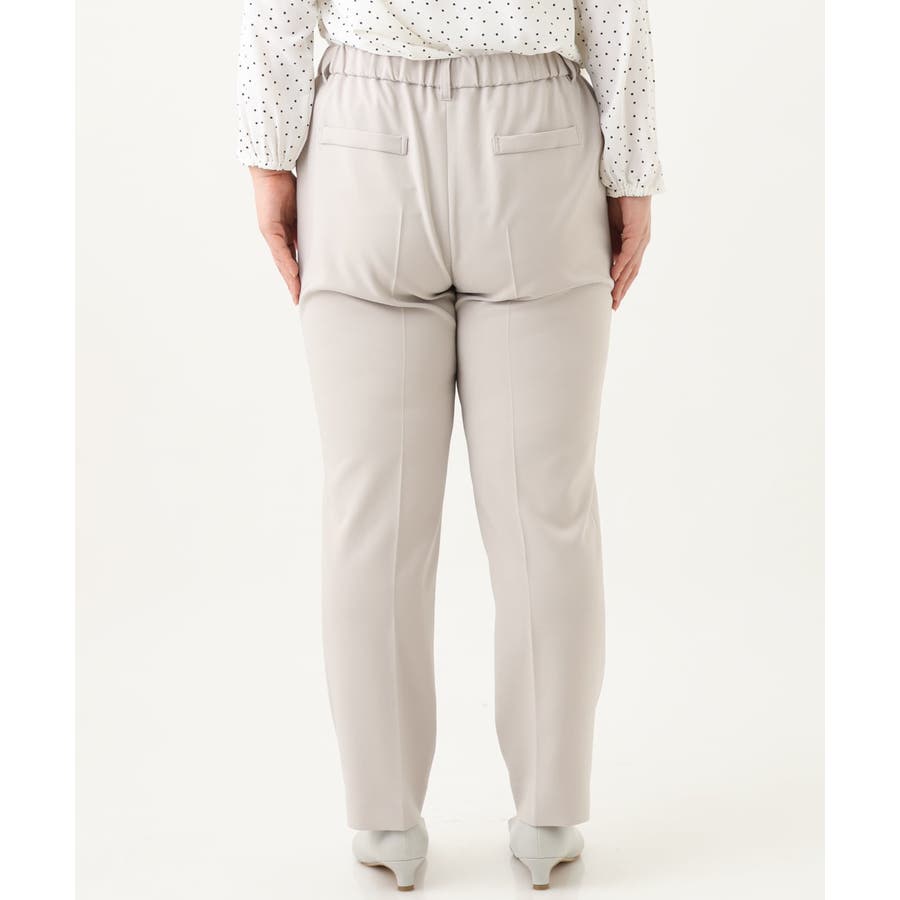 ウエストぐるりゴム入りの前ファスナーデザインで楽ちんな着心地。