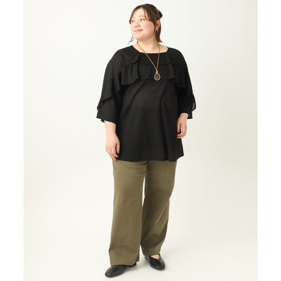 ラッフルカットソー(品番OLKEA18089)と合わせた甘辛ミックスなスタイリングもおすすめ。