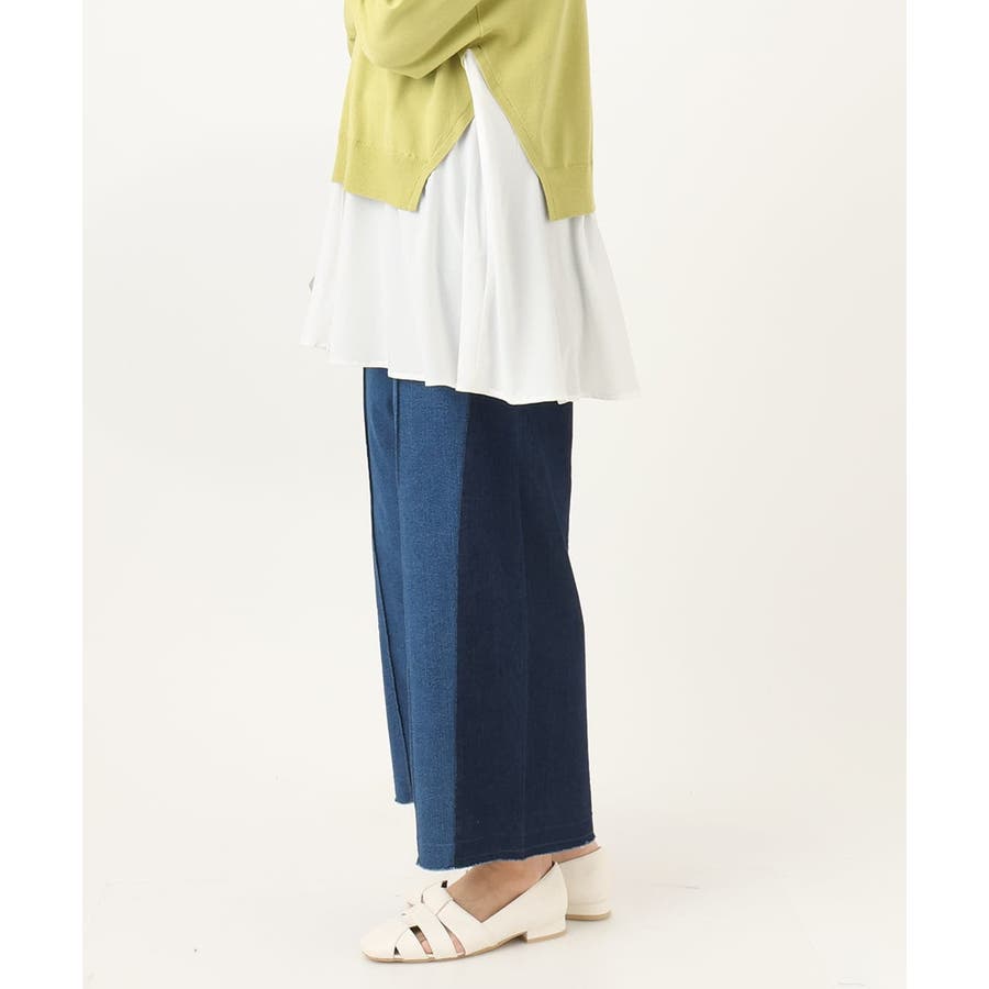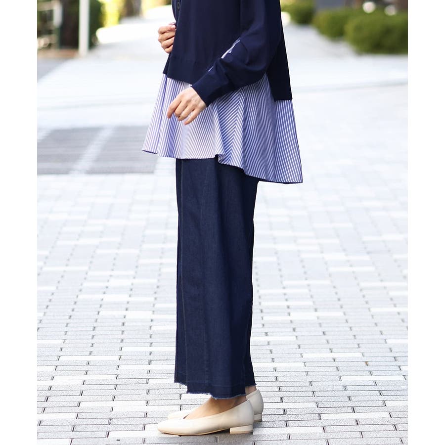程よいワイドシルエットなのでショート丈トップスからチュニックまで様々なトップスと相性良く着られます。