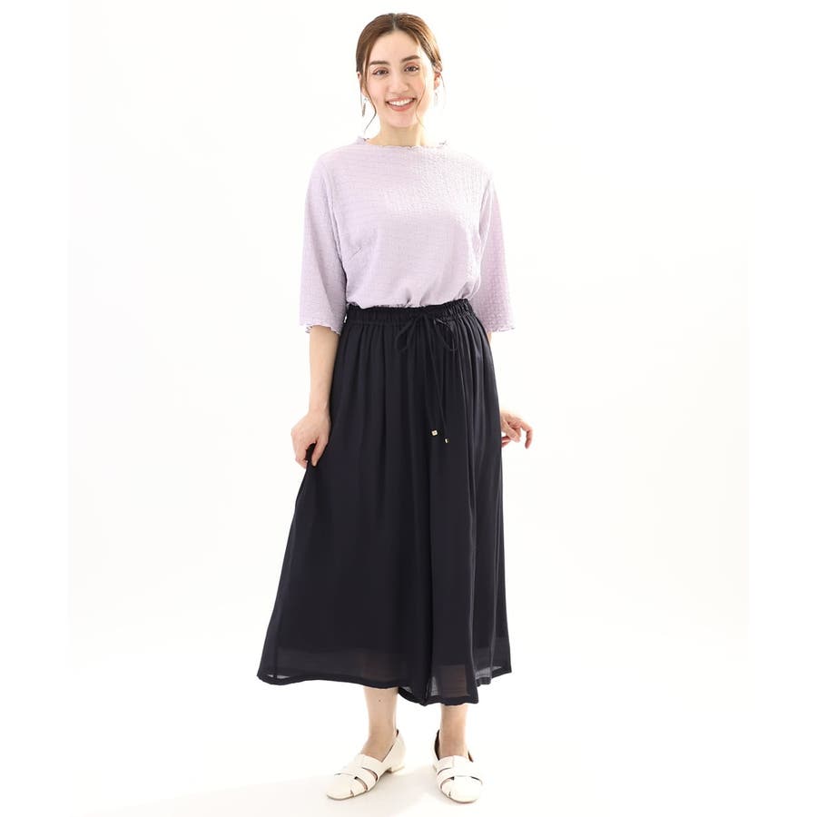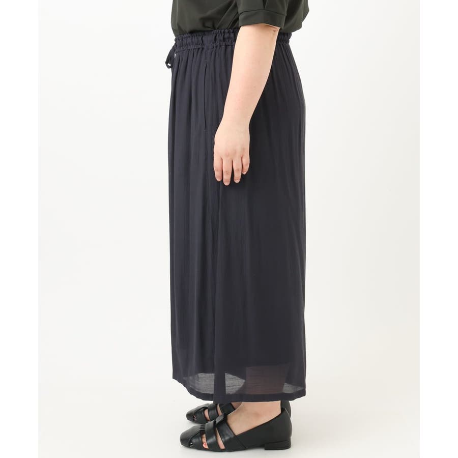 歩くたびに揺れるさらっと軽い涼しげ素材にストレッチの効いたジャージー裏地付きなので着心地も楽ちんです。