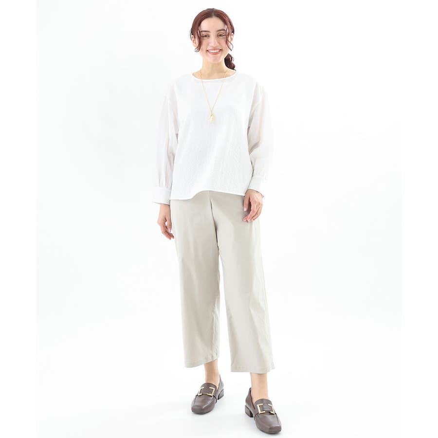 デイリーにもお仕事にも様々なシーンで活躍するシンプルなワイドパンツ。