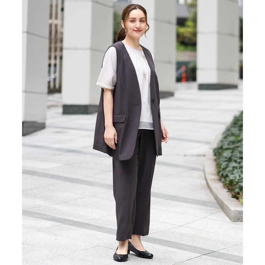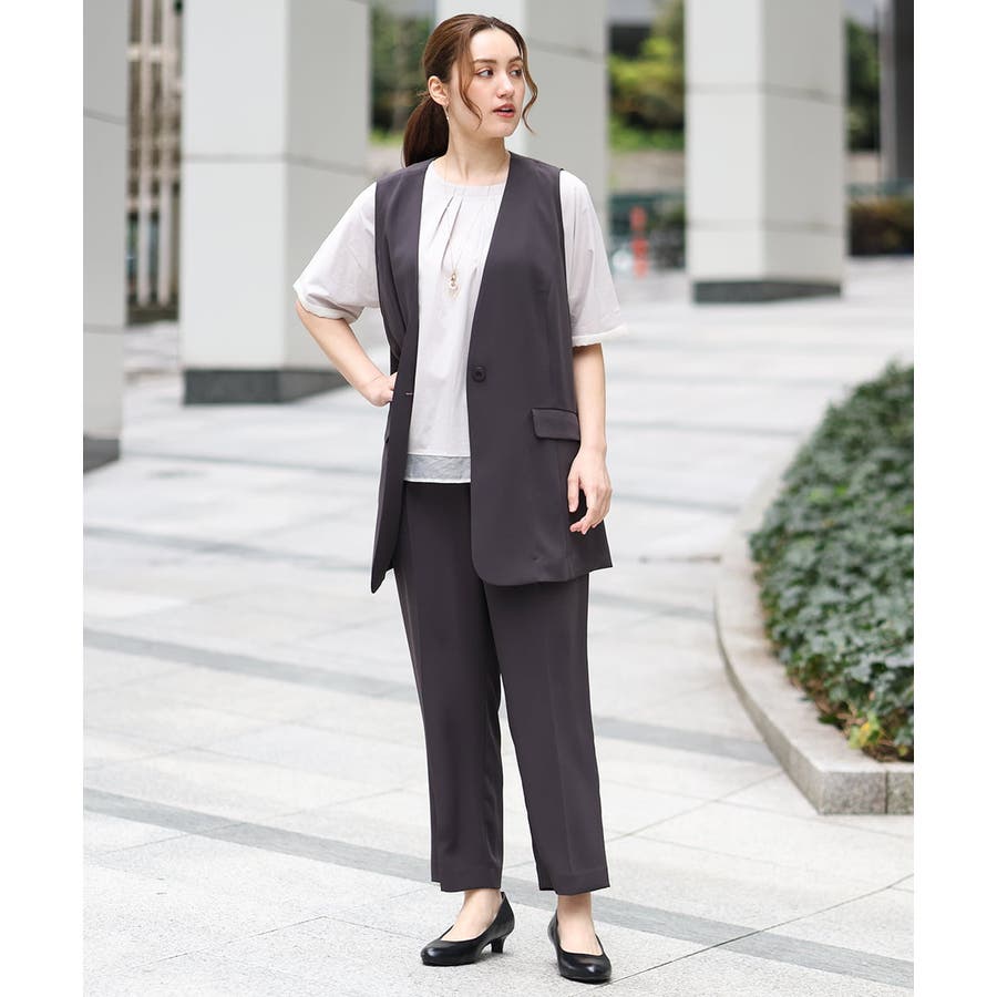 ジレ(品番OLJGA09149)とセットアップでご着用いただくとよりきちんと感がありおすすめ。