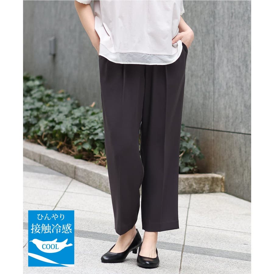 【大きいサイズ/接触冷感】カノコタックテーパードパンツ
