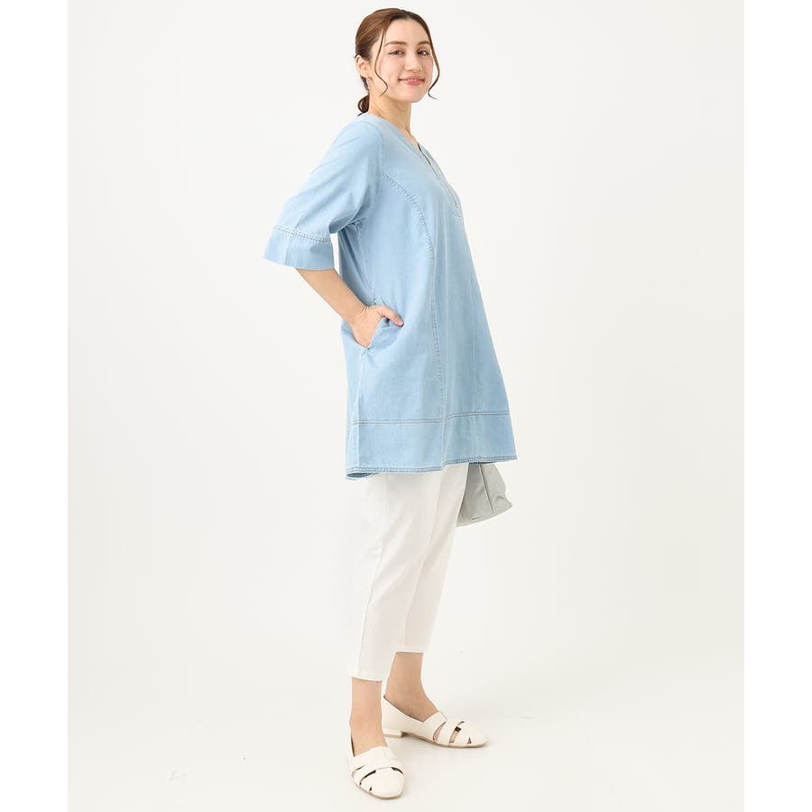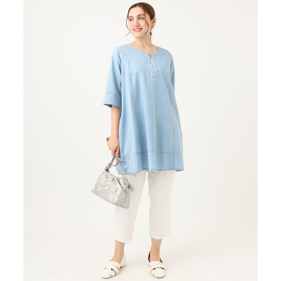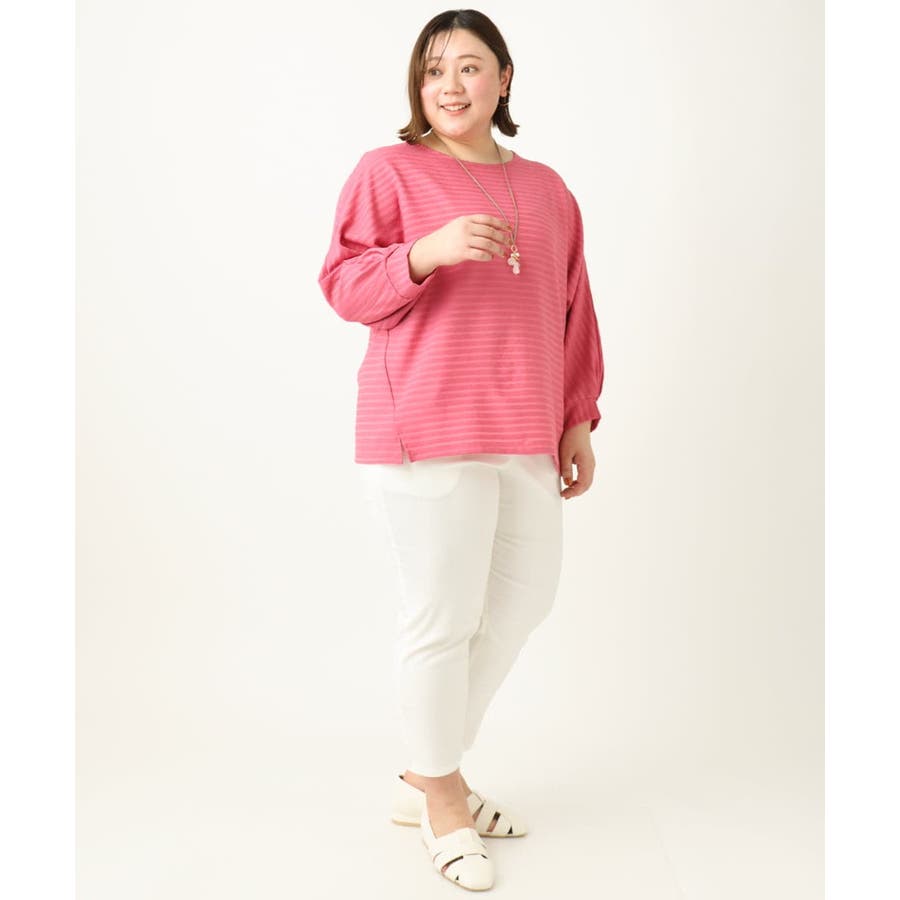 きれいめブラウスやカットソーはもちろん、チュニック丈の着丈が長めのアイテムでもすっきり着られます。