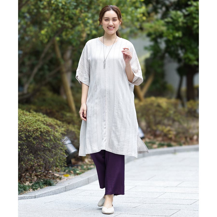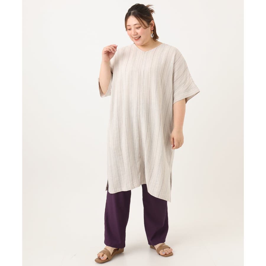 ストライプカフタンチュニック(品番OLEGA26119)と合わせたナチュラルなスタイリングがおすすめ。