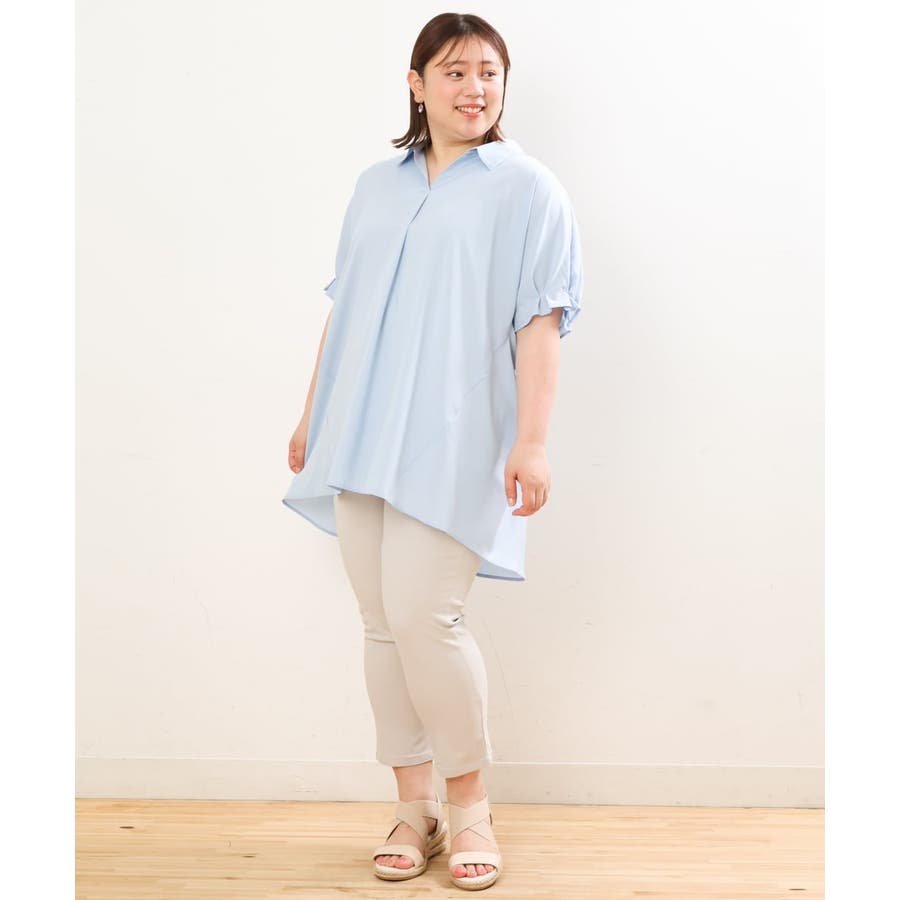 チュニックなど丈長めのアイテムと合わせてもすっきり着られます。