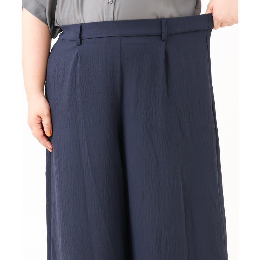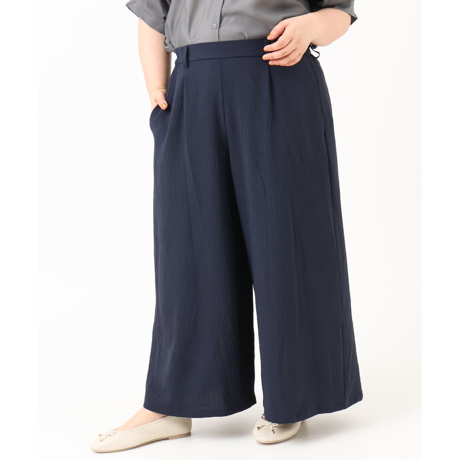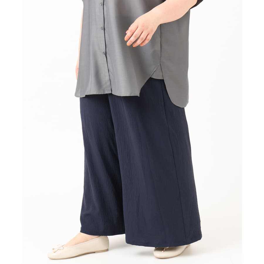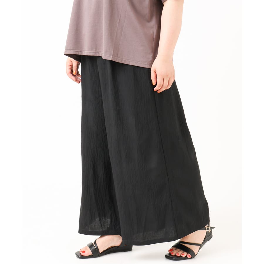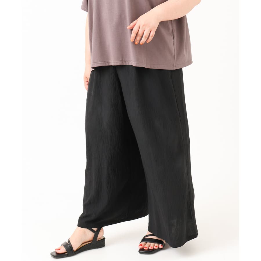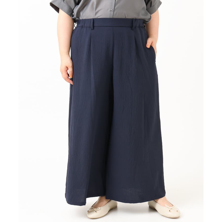 やわらかなシボ感とストレッチが着心地の良いワイドパンツ。