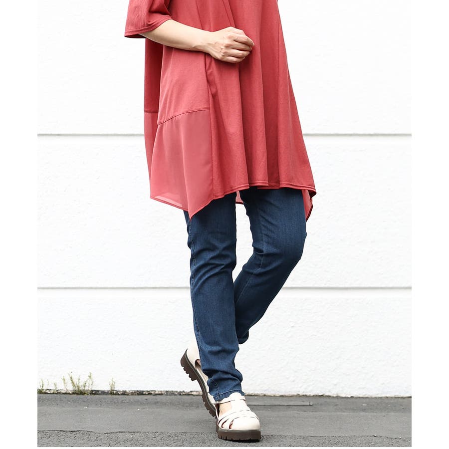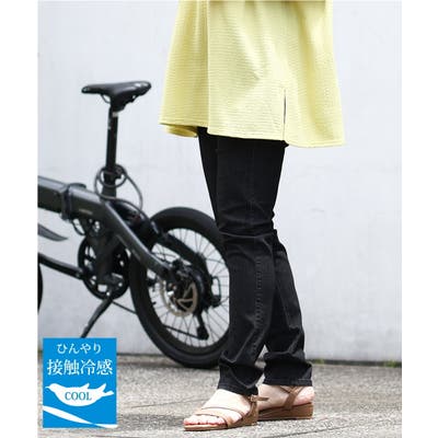 接触冷感のストレッチ性抜群のレギンス感覚で着用いただけるストレッチデニムを使用。