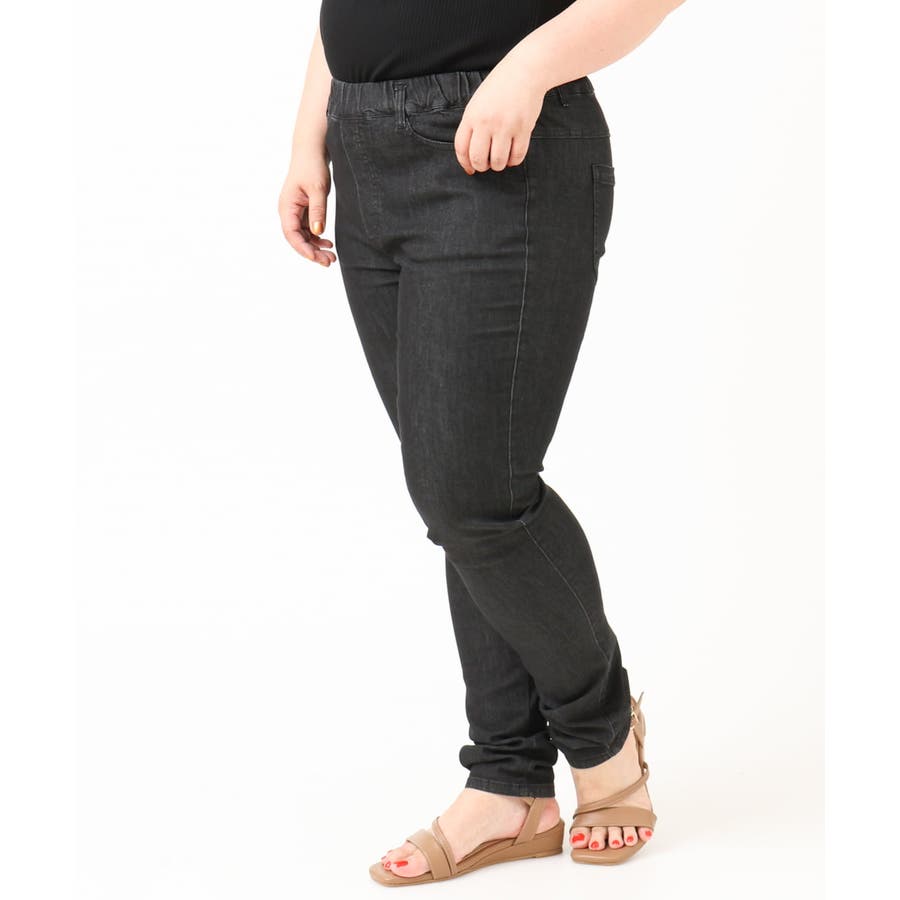 スキニーシルエットですがウエストぐるりゴム入りのはきこみタイプなのでお腹周りも楽ちんです。