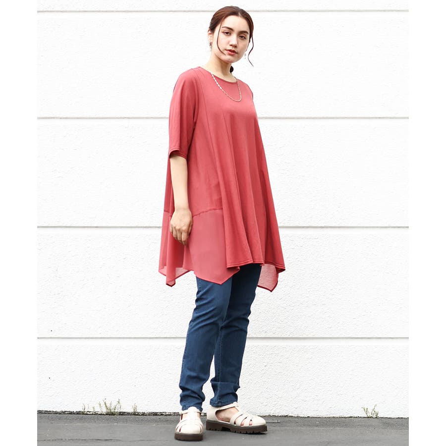 長め丈のチュニックを合わせたスタイリングがおすすめ。
