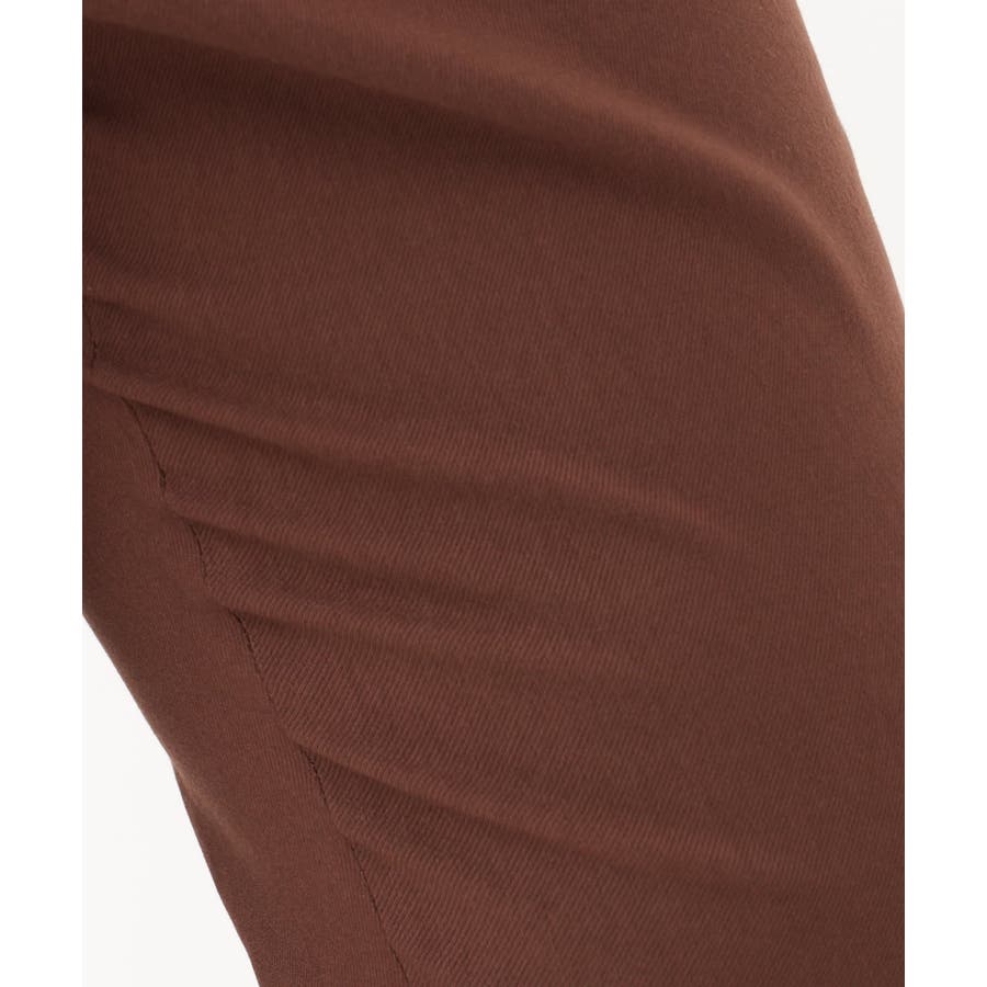 しっかりストレッチの効いた、サラッとした合繊素材。中肉なので、身体のラインも拾いにくい素材です。