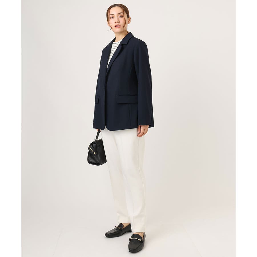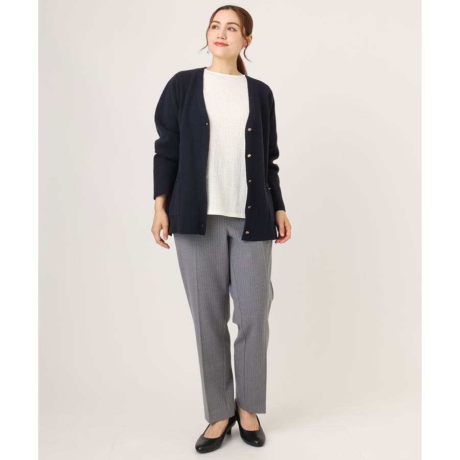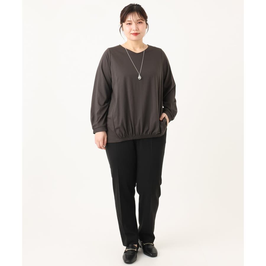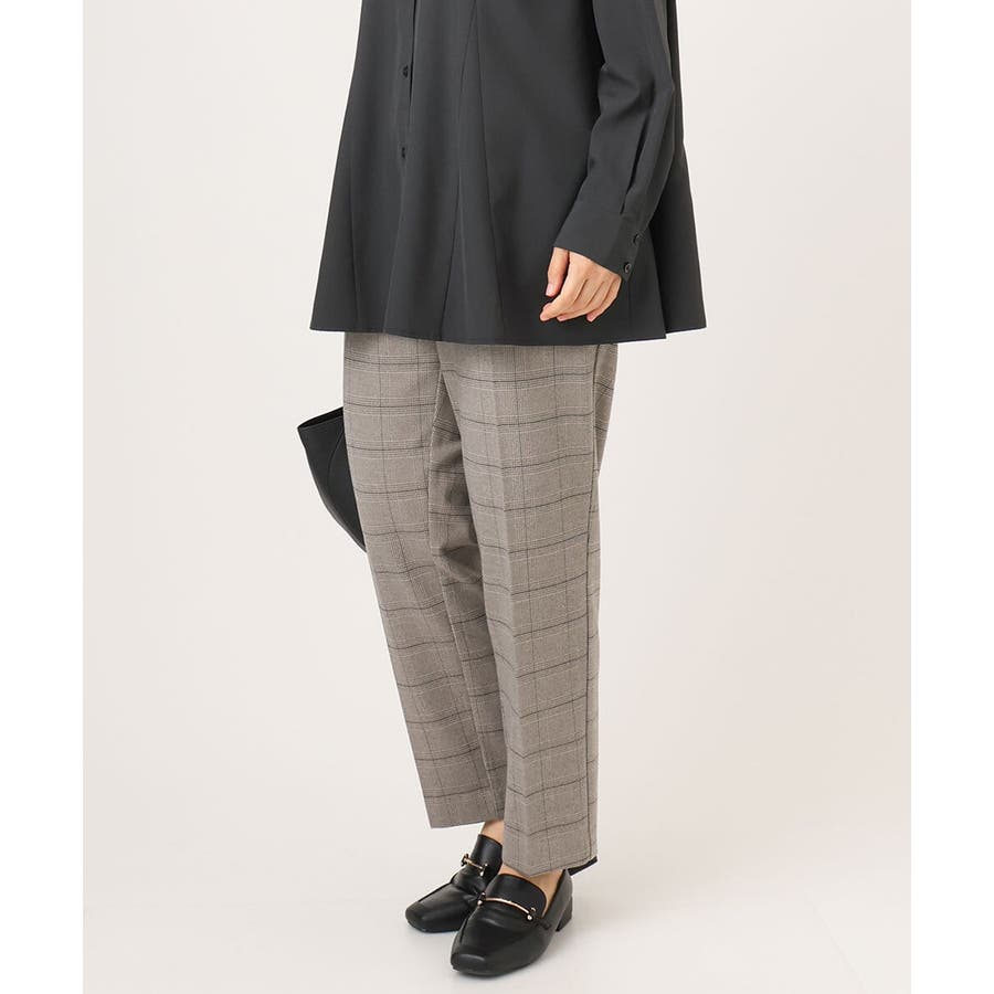 程よいストレートシルエットなのでウエスト丈のトップスも少し長めのチュニックブラウスもどちらもすっきり着られます。