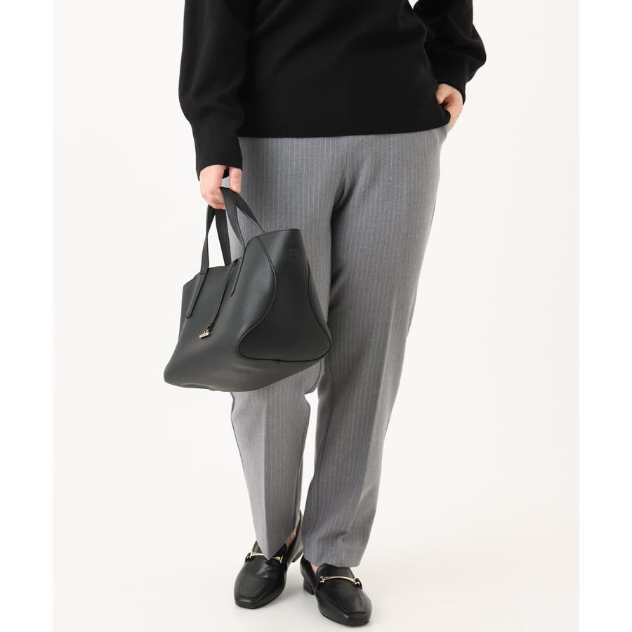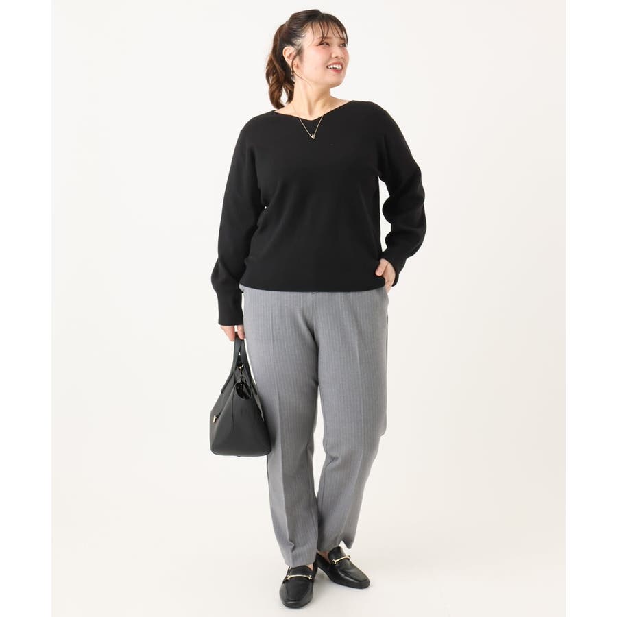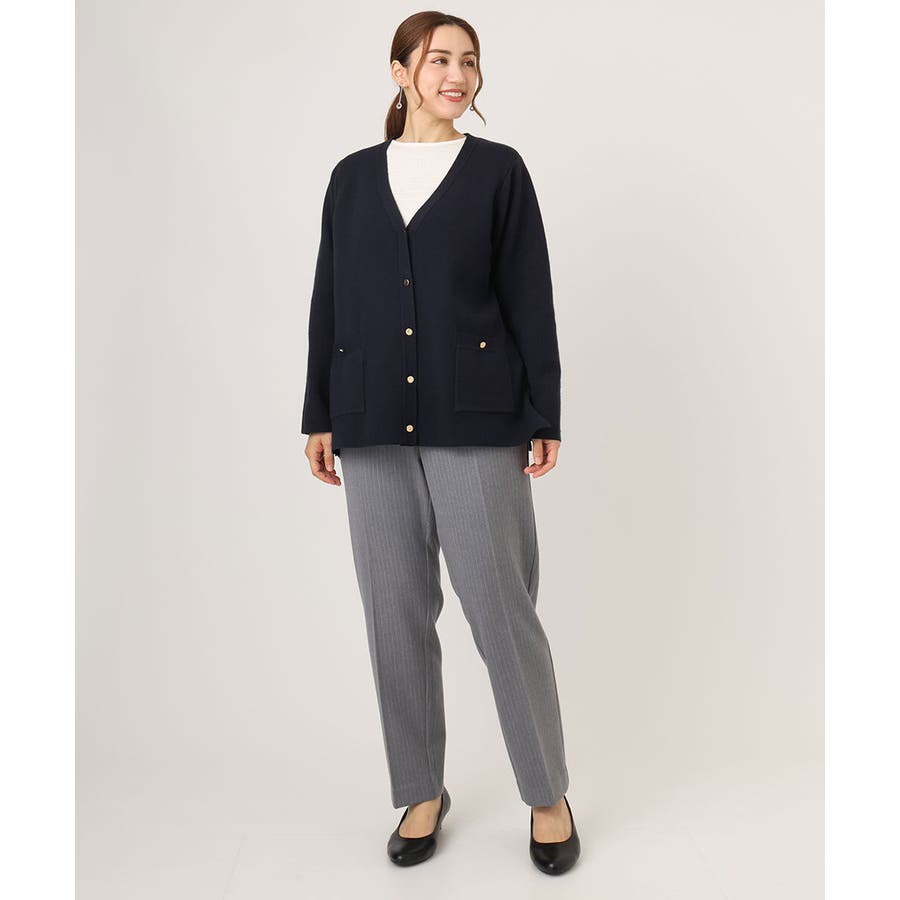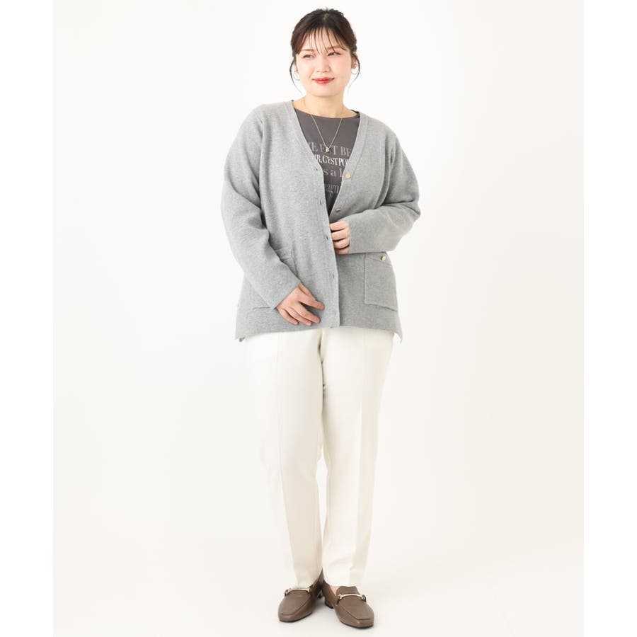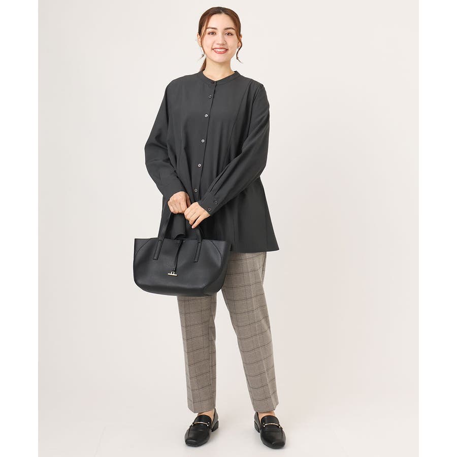 程よいストレートシルエットなのでウエスト丈のトップスも少し長めのチュニックブラウスもどちらもすっきり着られます。