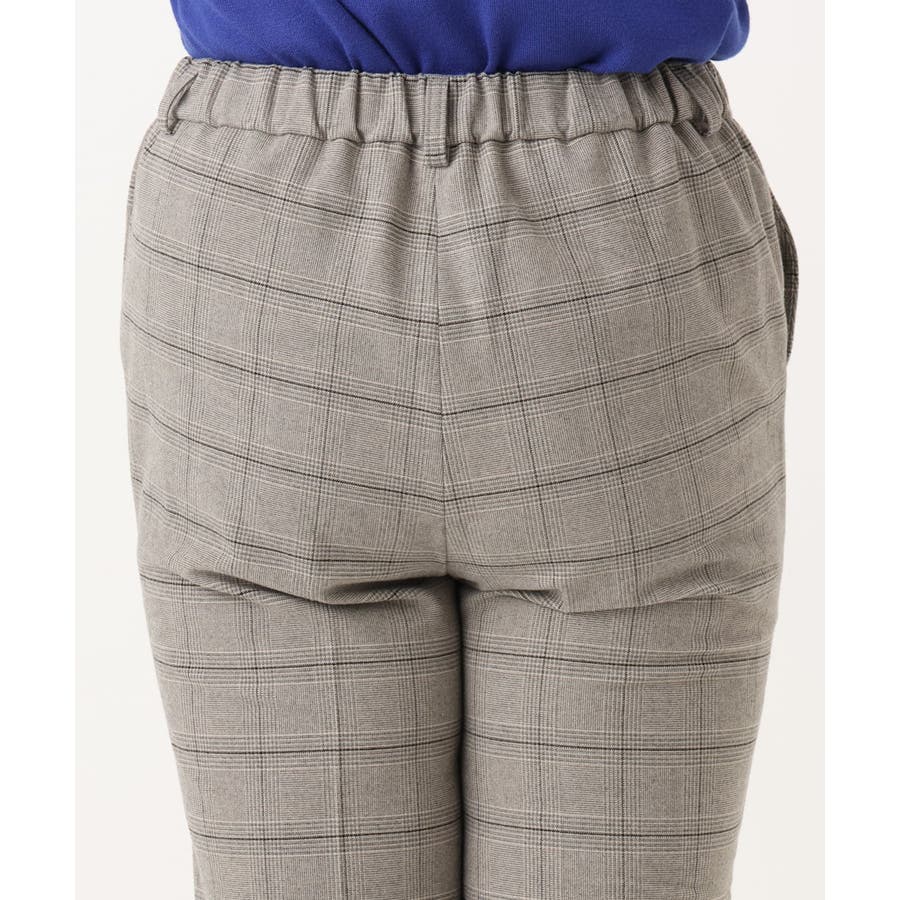 ウエストぐるりゴム入りですが、前開きのデザインなのでトップスをタックインしてもすっきり着られます。