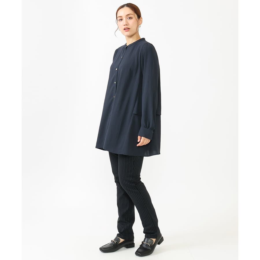 チュニックなど重たくなりがちな着丈長めのアイテムもすっきり決まります。