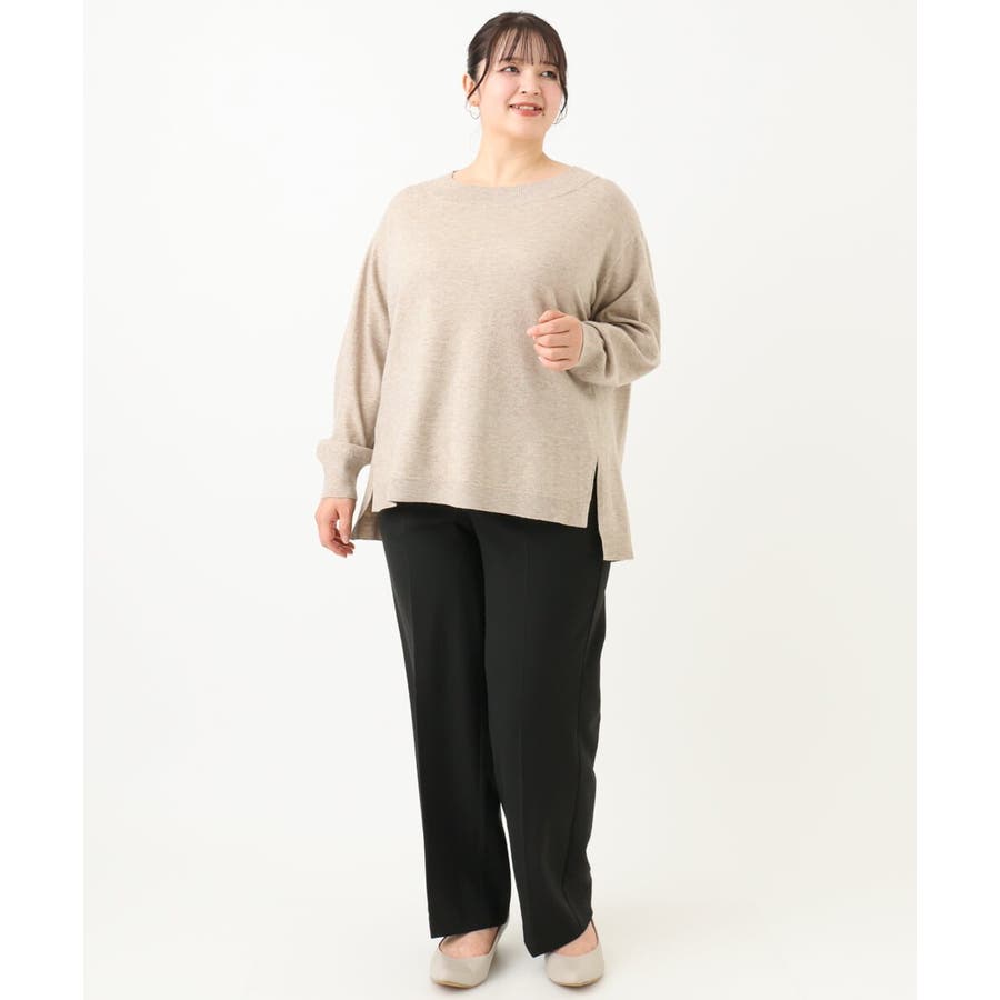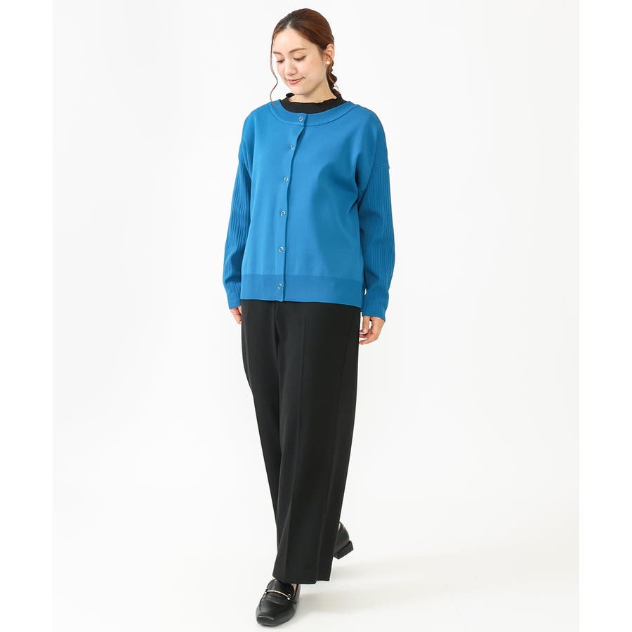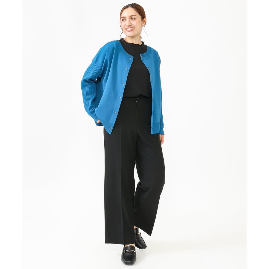 すっきりストレートシルエットなので腰回りをカバーしたい方はロングカーディガンを合わせるのもおすすめです。