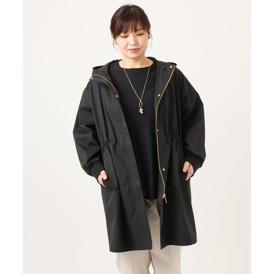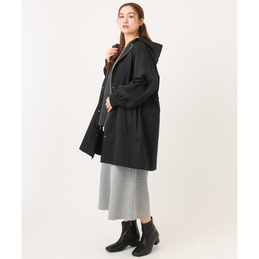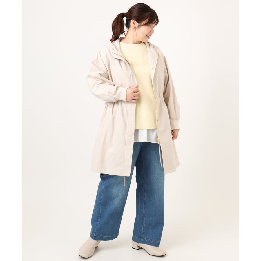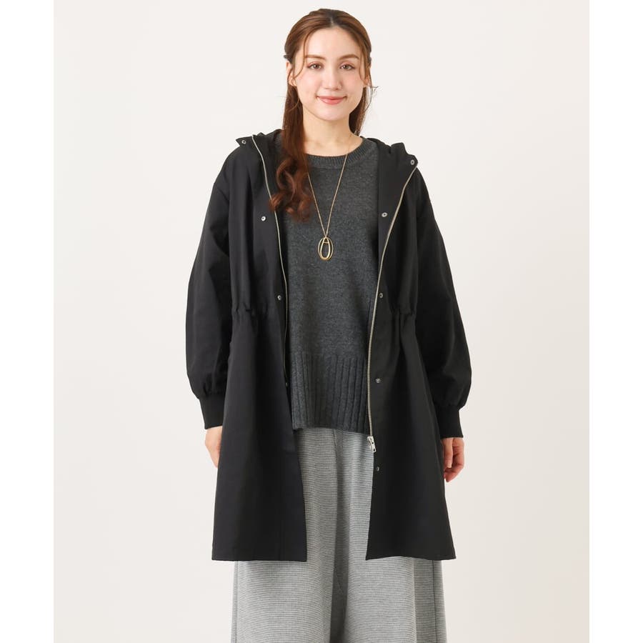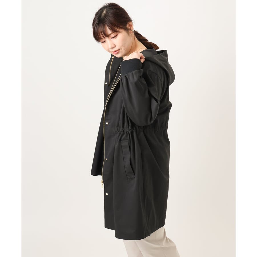 綿混素材のほどよいハリ感が、フーディーデザインを大人かわいく引き立てるコート。