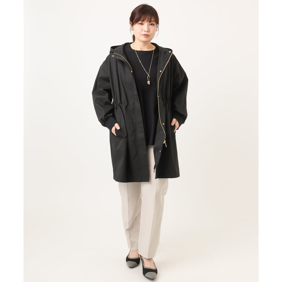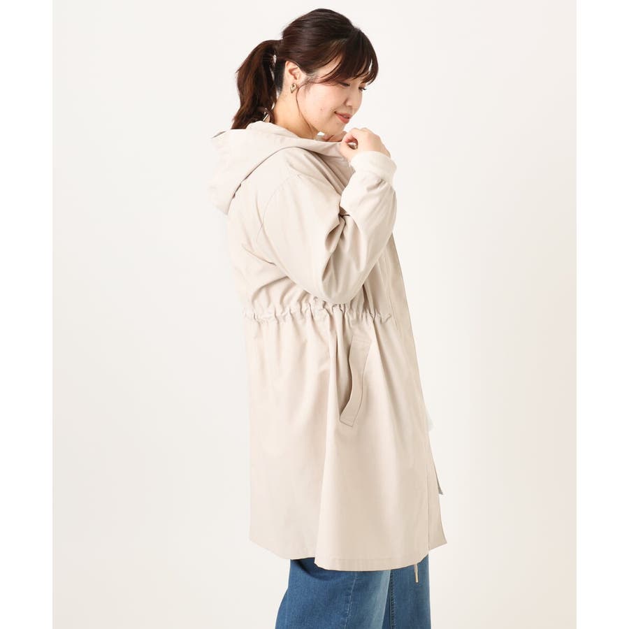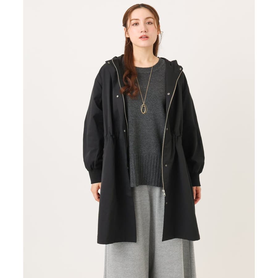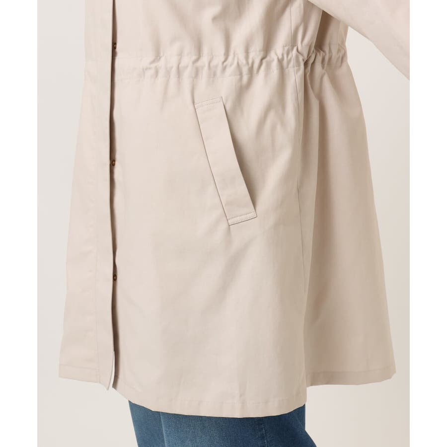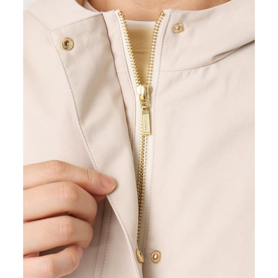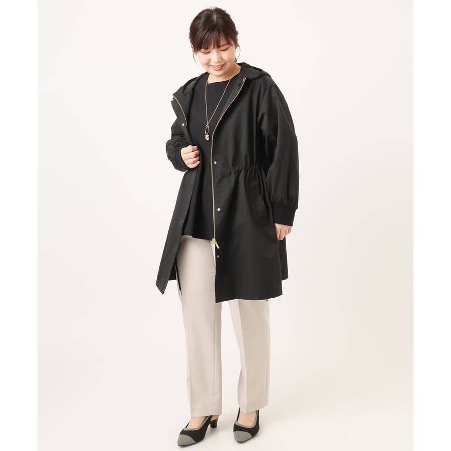 綿混素材のほどよいハリ感が、フーディーデザインを大人かわいく引き立てるコート。