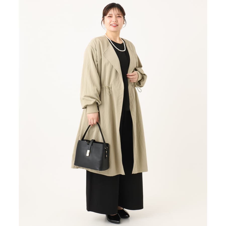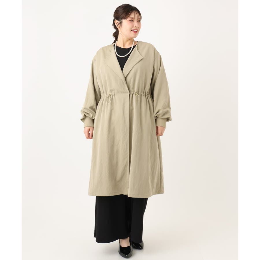 【大きいサイズ】ノーカラーロングコート