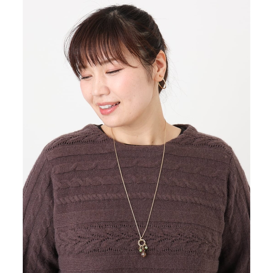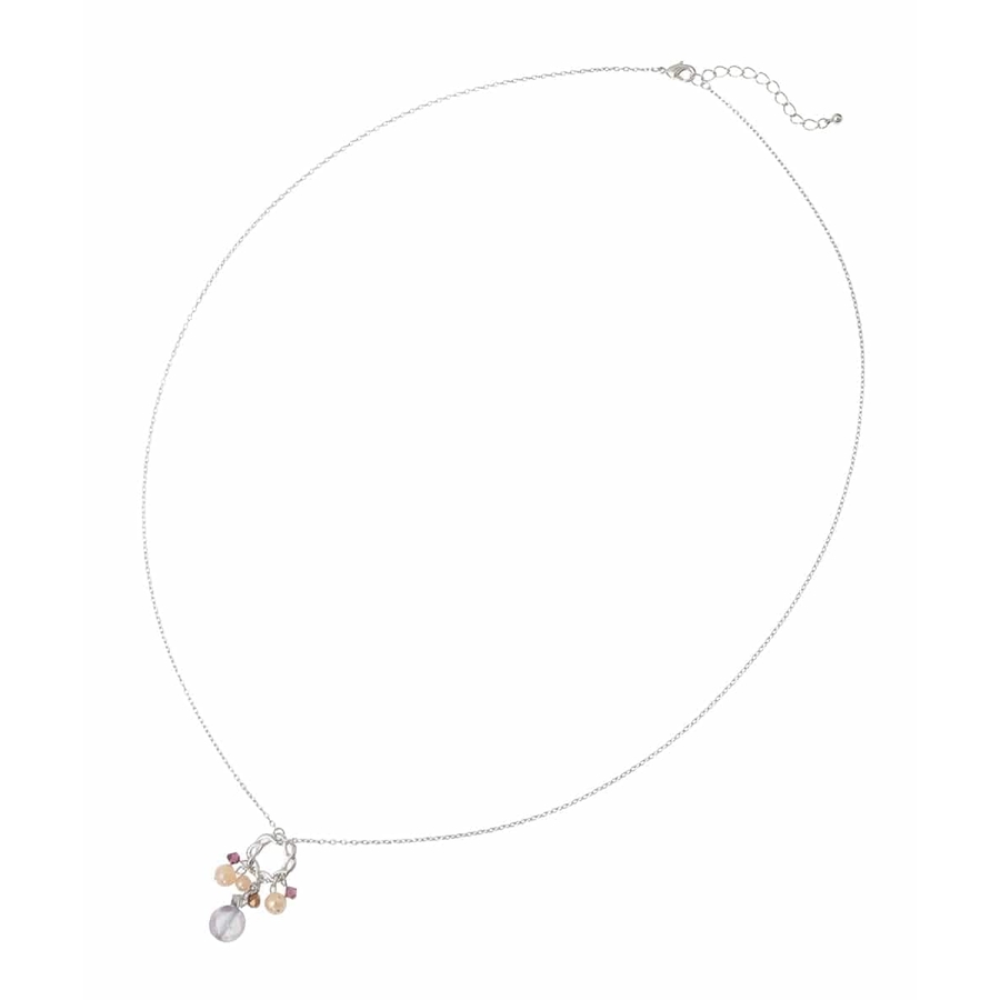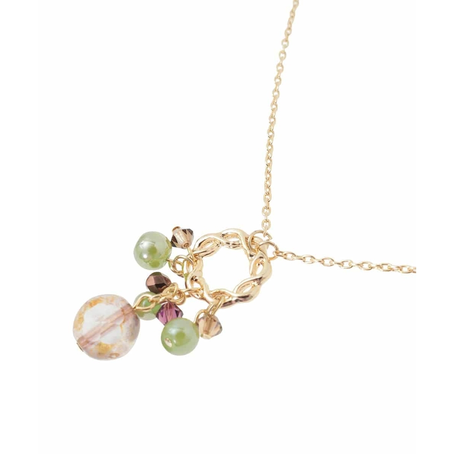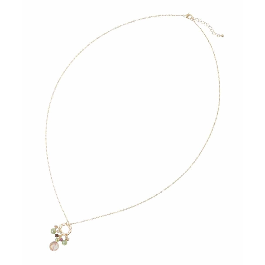 優しいカラーのビジューパーツと品のあるメタルを合わせたスウェイニュアンスが魅力的なネックレス。