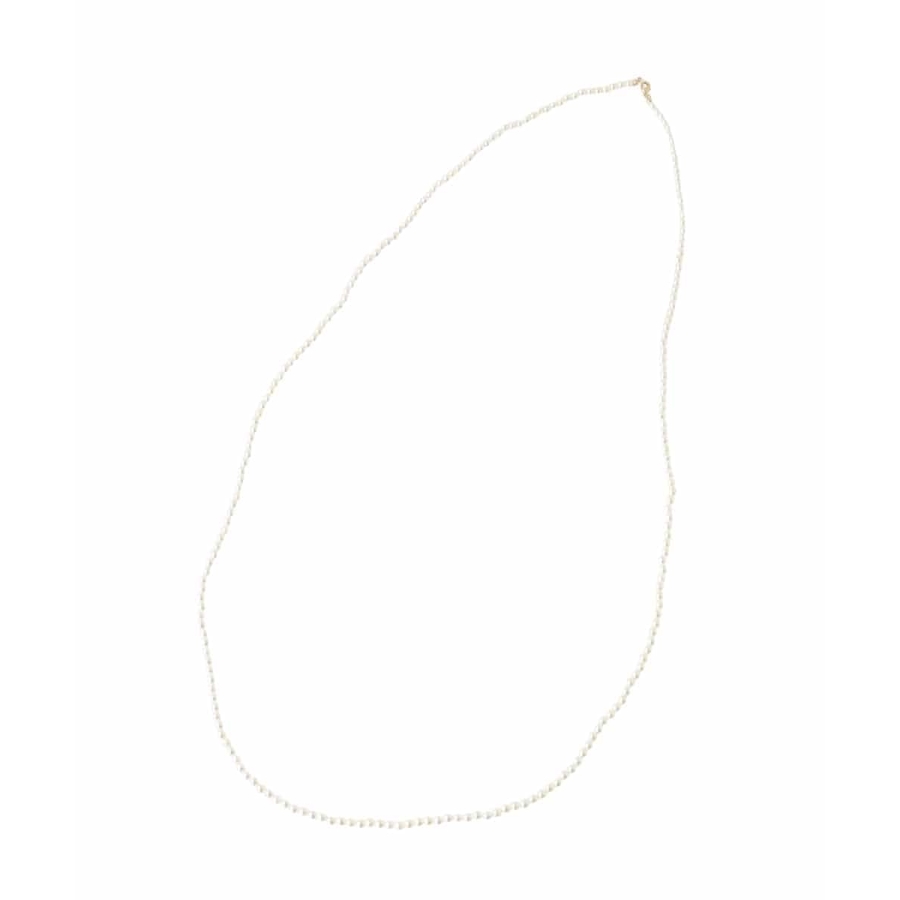 上品な光沢のあるパールパーツが目を惹くクラシカルなロングネックレス。さりげないアクセント使いに丁度良い、コロンとした小粒のフェイクパールがポイントです。ロングネックレスとしてはもちろん、2重に重ねてボリュームを出すのもおすすめ。スタイリングに取り入れて品のある着こなしを後押ししてくれるひと品です。