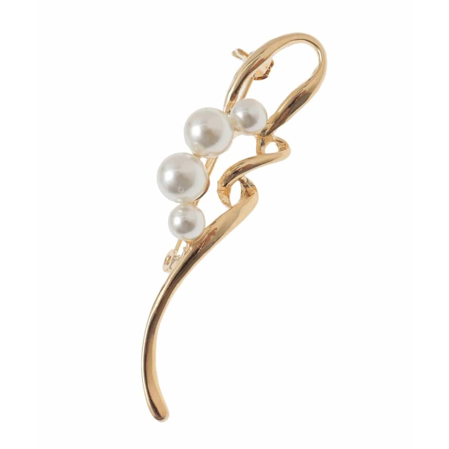柔らかなニュアンスカーブを描くデザインブローチ。メタルバーにフェイクパールをあしらうことでより柔らかな印象をプラスします。セレモニーシーンにはもちろんデイリースタイルにも最適。程よいサイズ感で目立ちすぎず、品良くスタイリングに馴染んでくれるプラスワンアイテムです。