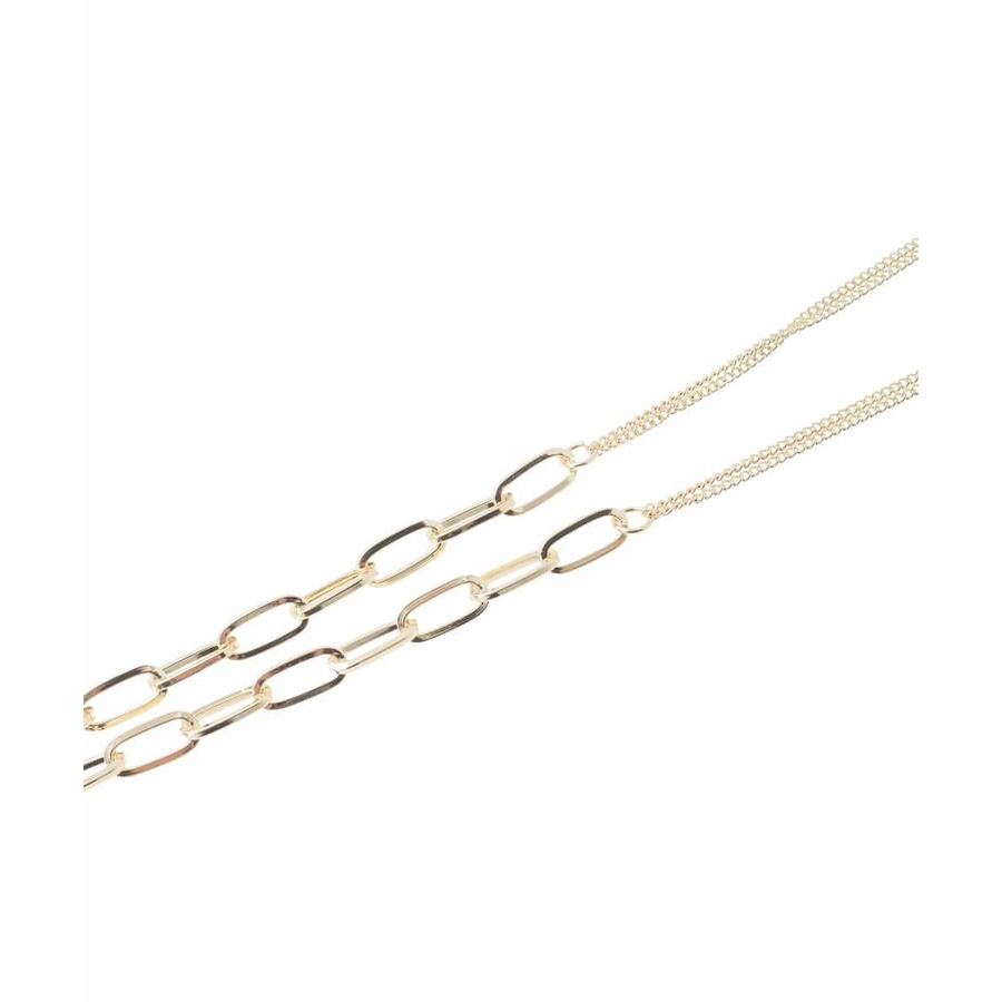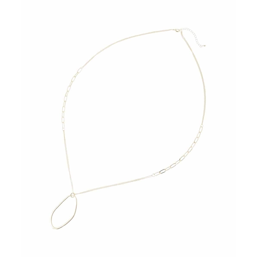 異なるデザインを組み合わせたロングチェーンは胸元のすっきり見せを叶えます。