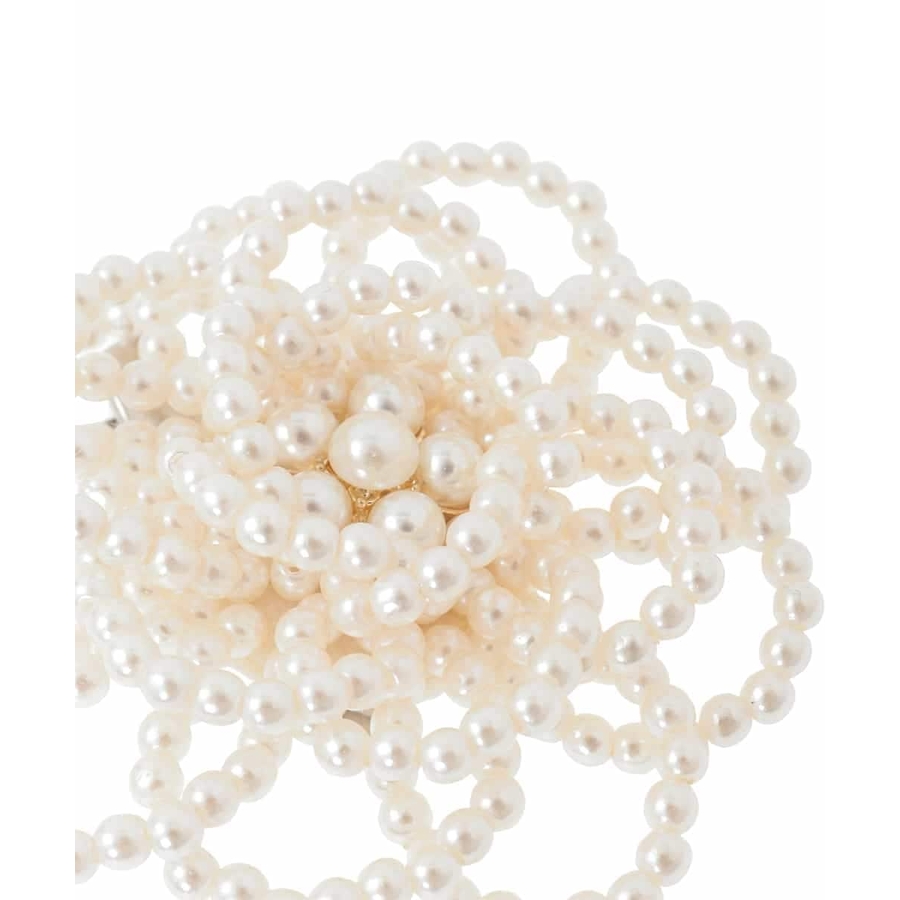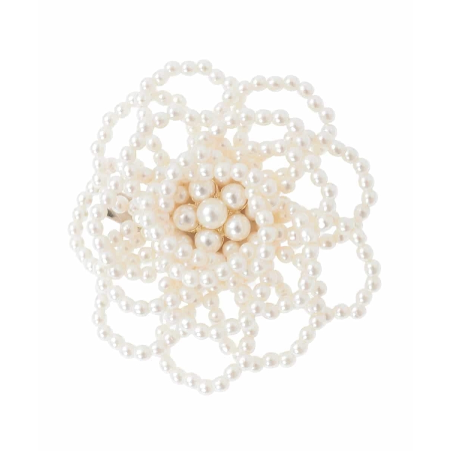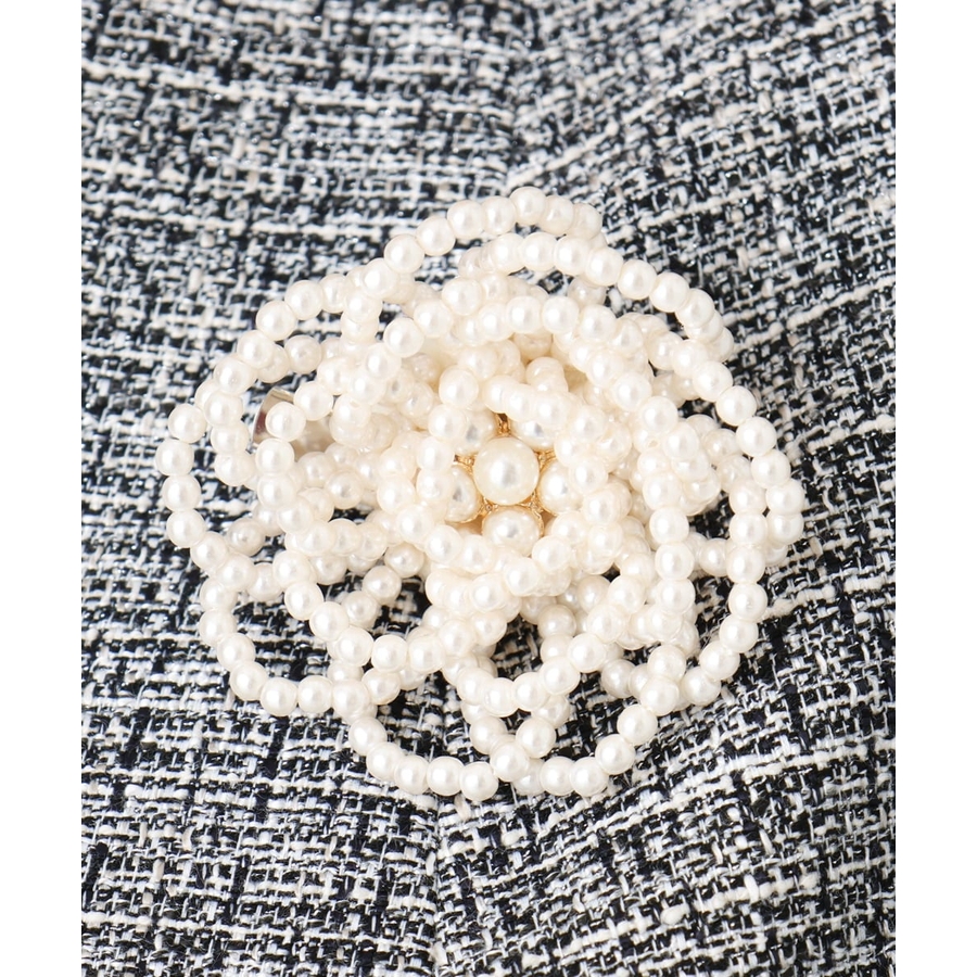 大小のパールを贅沢に仕様した華やかなフラワーモチーフコサージュ。中央には艶やかな大粒パールをあしらい周囲を繊細なパールラインで囲むことで、クラシカルで女性らしい印象に仕上げます。フォーマルなシーンにはもちろん結婚式や特別なお出かけの日にもおすすめ。シンプルなコーディネートに添えるだけでグッと洗練された雰囲気に仕上げてくれるアイテムです。