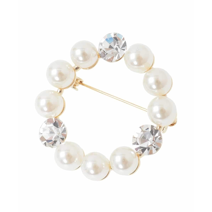 艶めくパールと煌めくストーンをMIXした上品なサークルモチーフ。シンプルで派手すぎずスタイリングに程よく華やかさを添えてくれます。セーターやジャケットのワンポイントにはもちろん、マフラーやストールのクリップとしても最適。フォーマルな装いにはもちろん、いつものコーディネートに1点投入するだけで品良く格上げしてくれるおすすめのアイテムです。