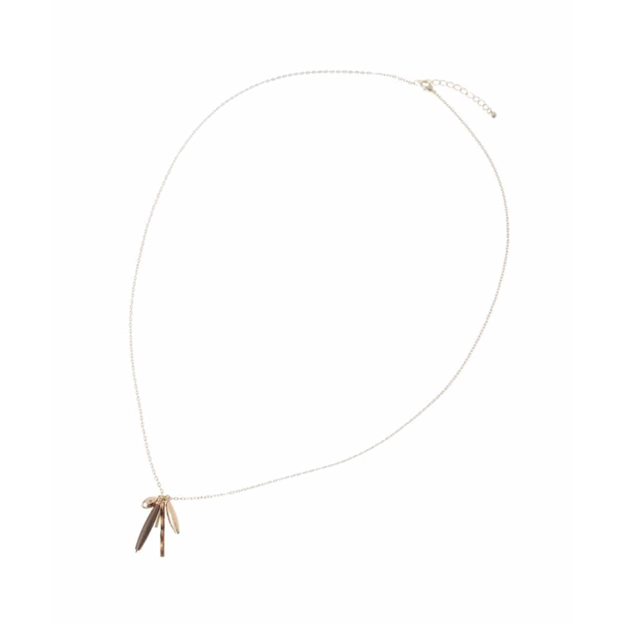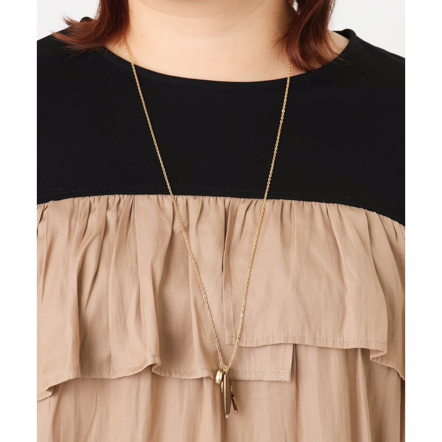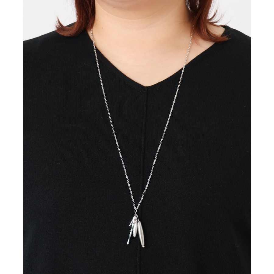 様々な形と素材のパーツをトップに合わせたデザインネックレス。マットや艶など異なるさりげない輝きがスタイリングに華やかさをプラスします。ロングチェーンが縦のラインを強調し、すっきり見せを演出。きれい目にはもちろん、カジュアルスタイルのアクセントとしても合わせていただけるおすすめのアイテムです。