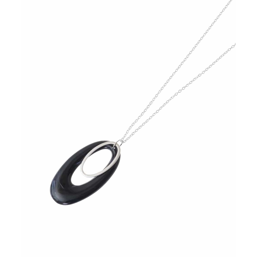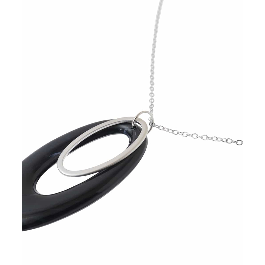 マットに艶めくメタルと樹脂パーツのオーバルリングをMIXさせたお洒落なネックレス。