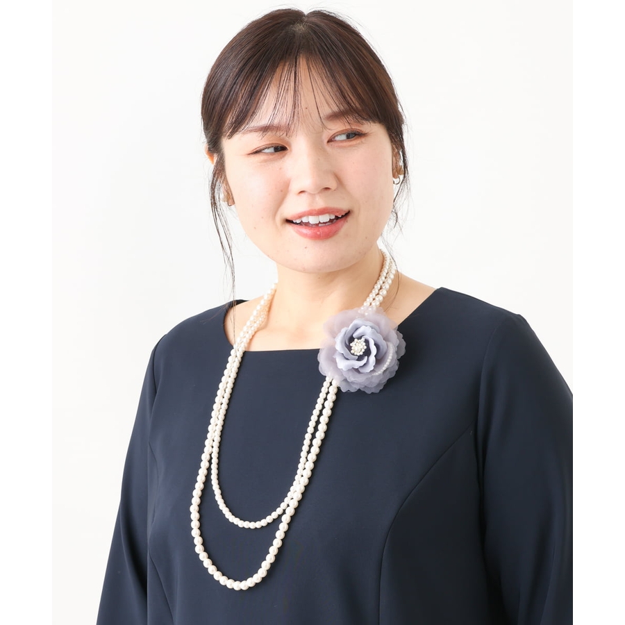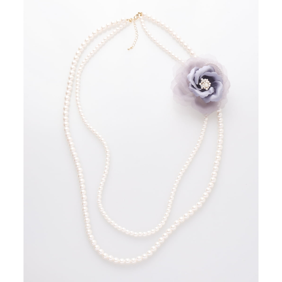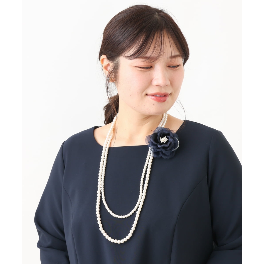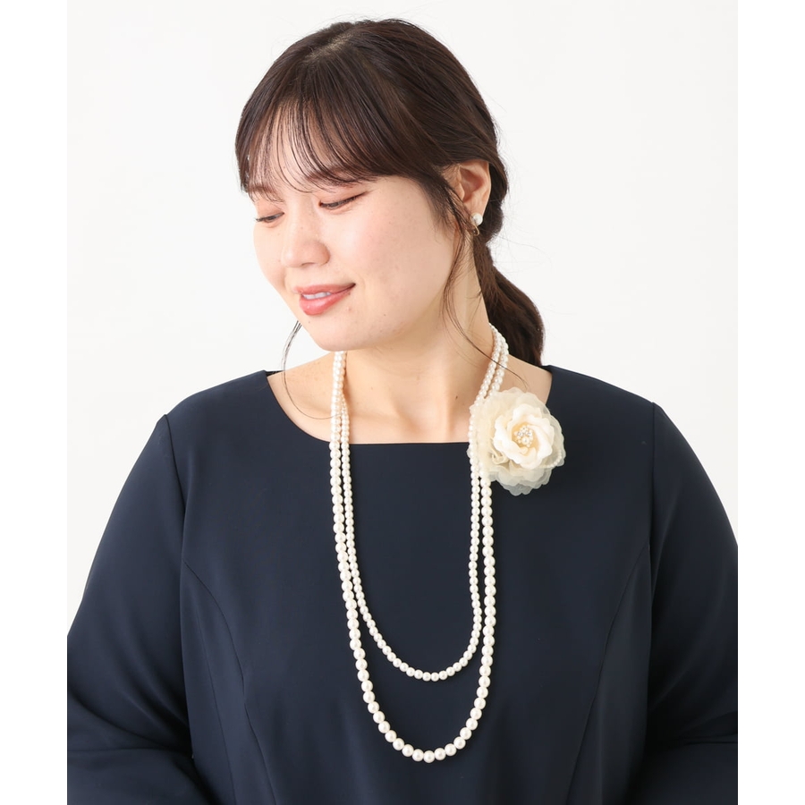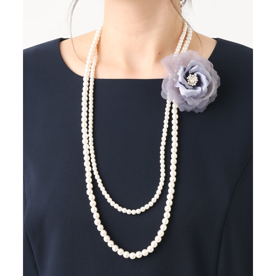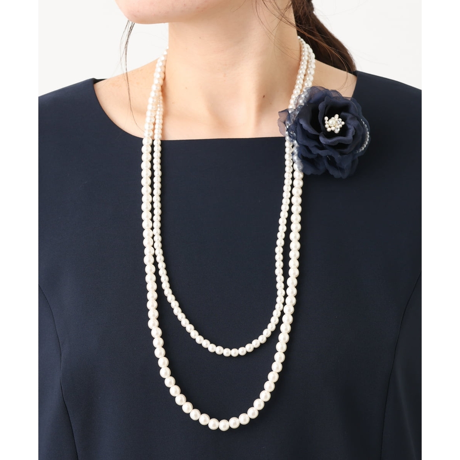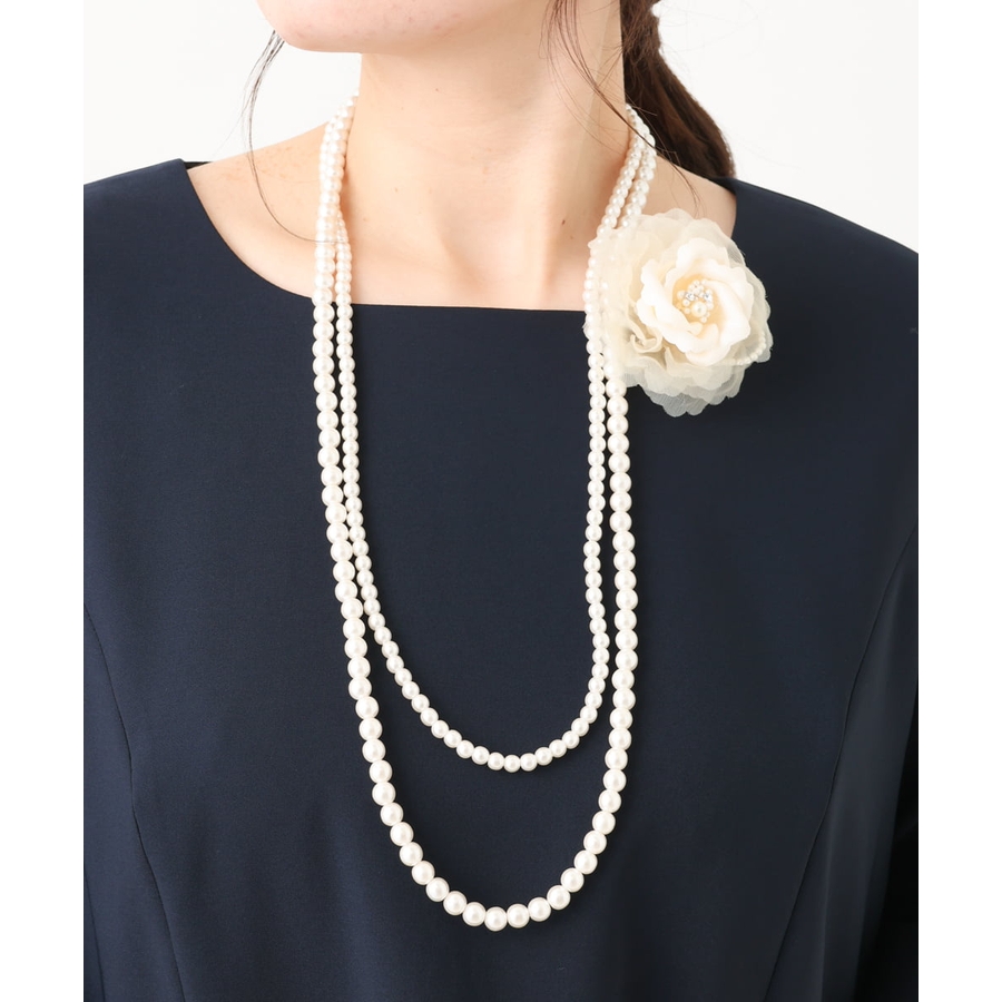コサージュ付き2連パールネックレス