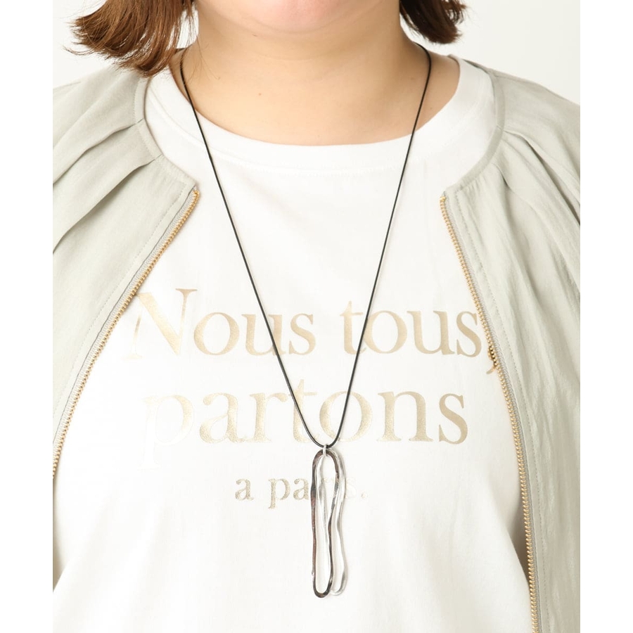 重なるメタルフープが大人の魅力を引き出すロングネックレス。