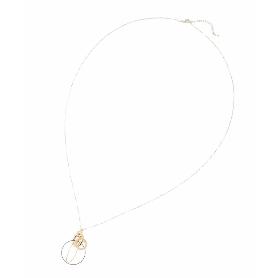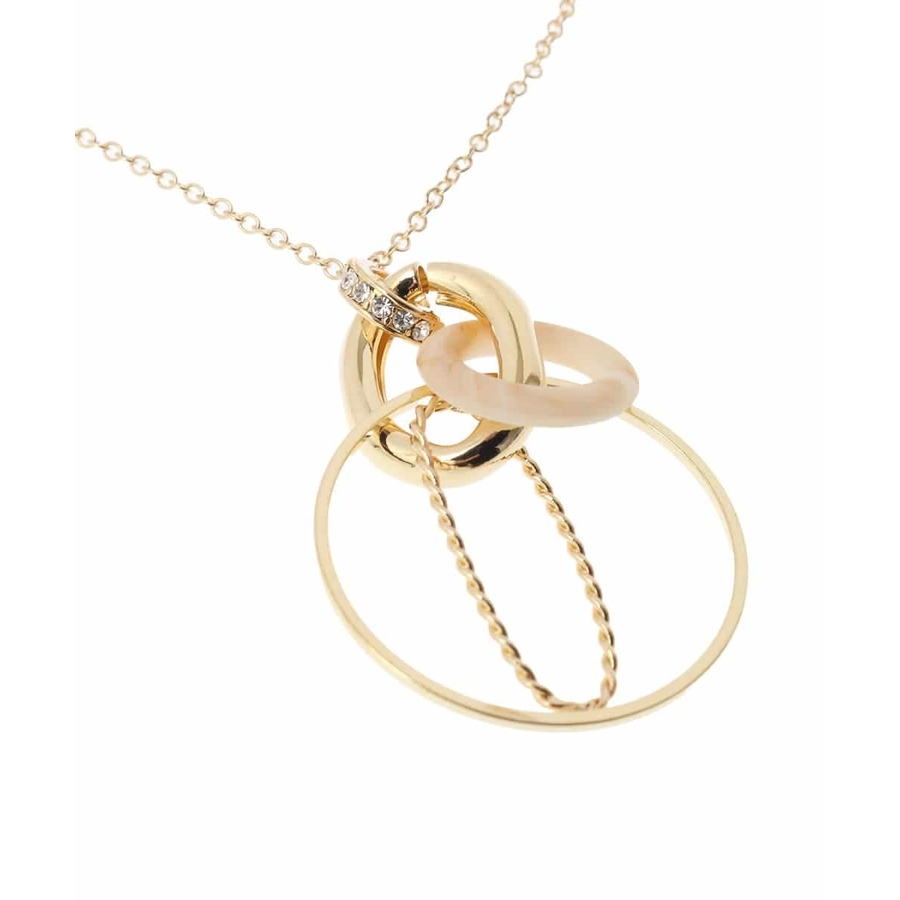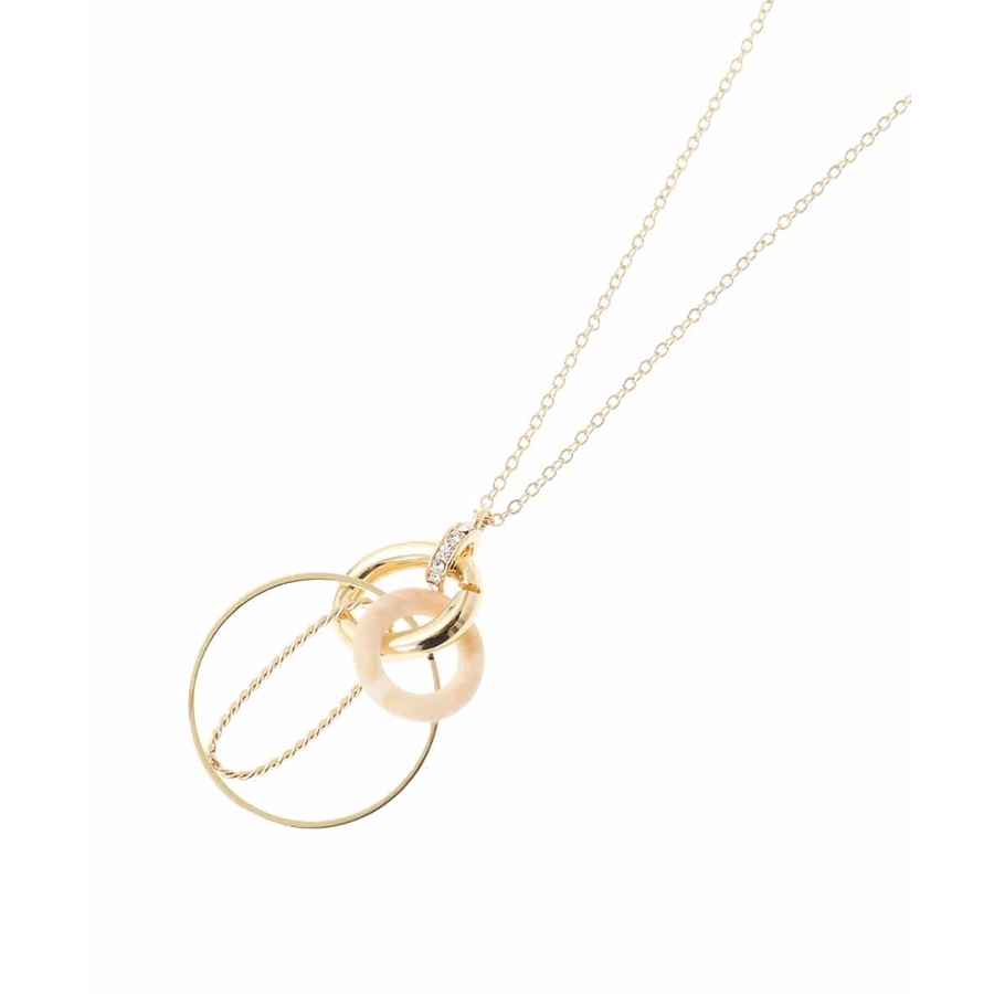 形状や素材の異なるリングモチーフを合わせたワントップネックレス。