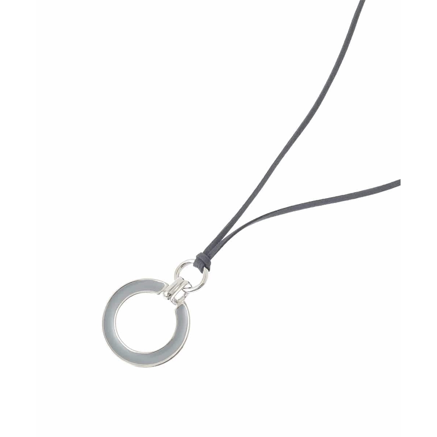 お洒落なレザー調紐に加えたメタルパーツをスライドして長さの調整アレンジも自在です。