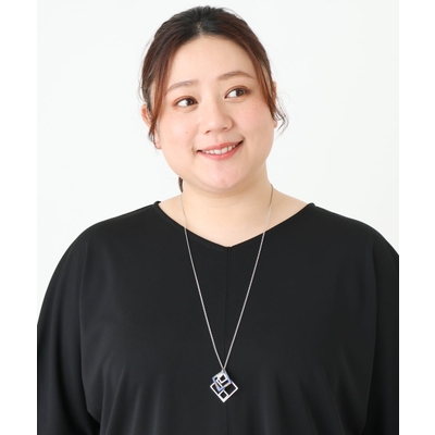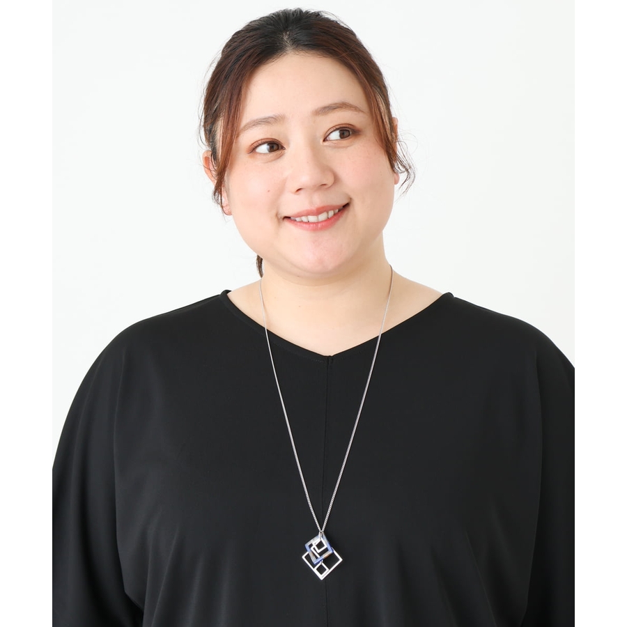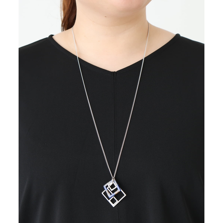 スクエアモチーフデザインロングネックレス