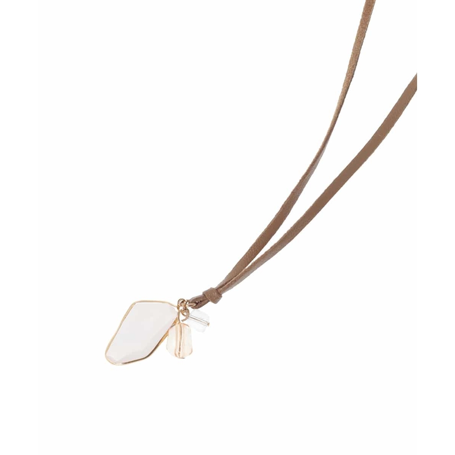 トップにはクリアなビーズとストーン風のニュアンスあるモチーフを合わせ、涼しげな印象をプラスしています。スライドボールで自由に長さ調節が出来るのも嬉しいポイント。