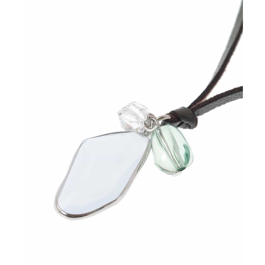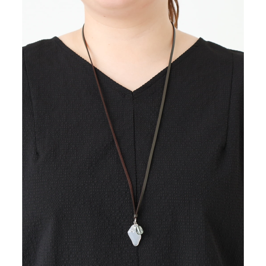 大人カジュアルスタイルにマッチするレザー調コードを使用したネックレス。