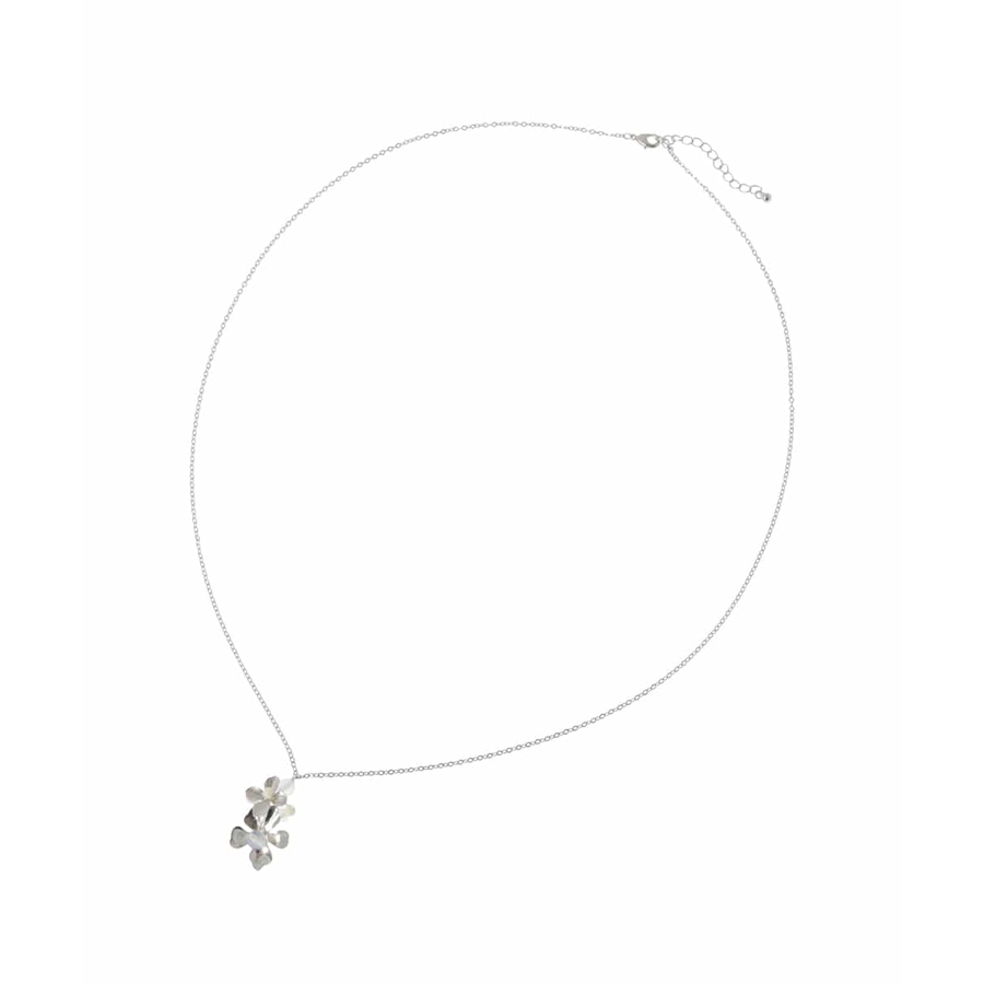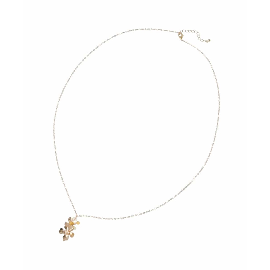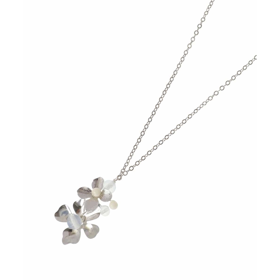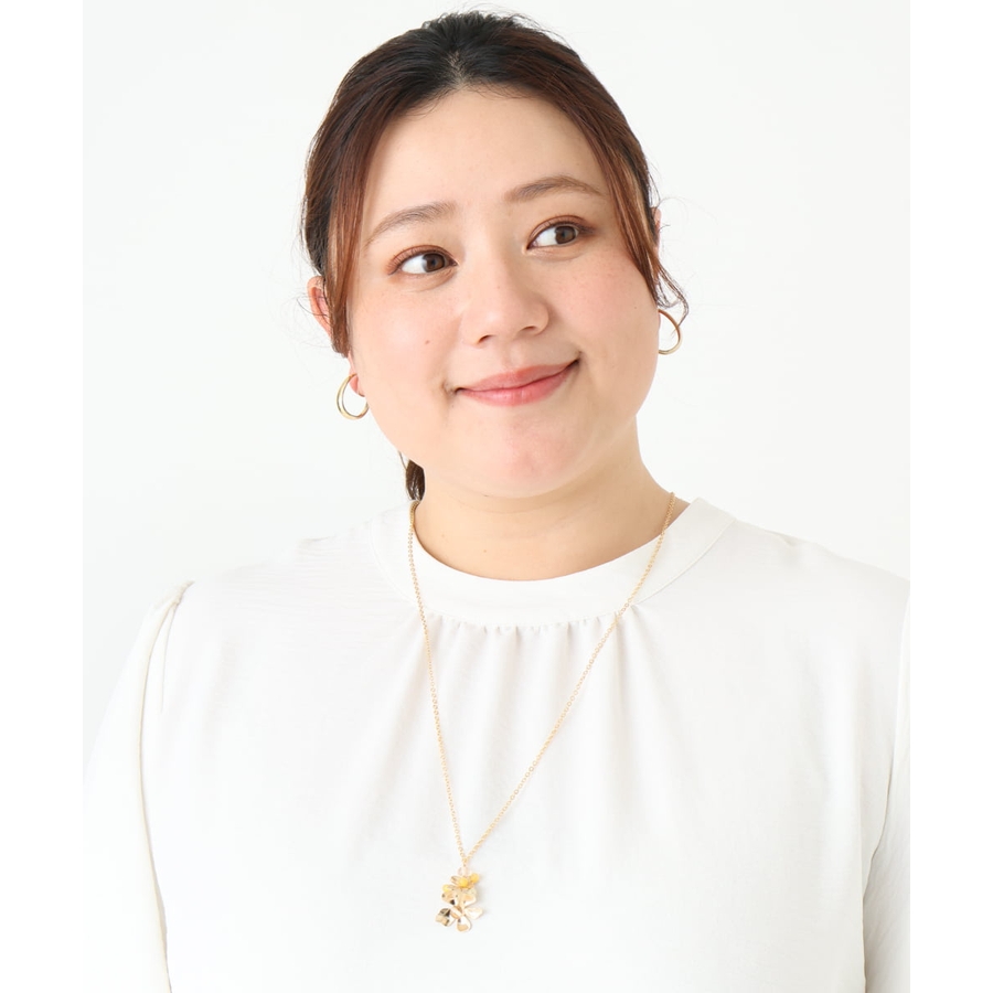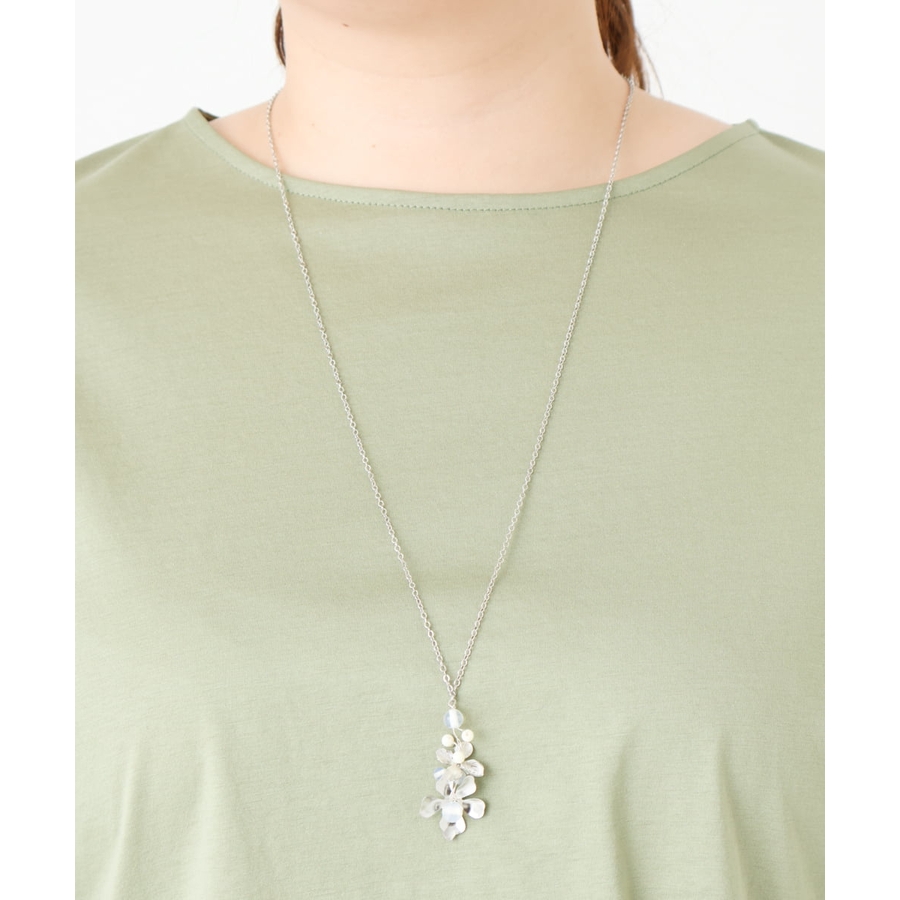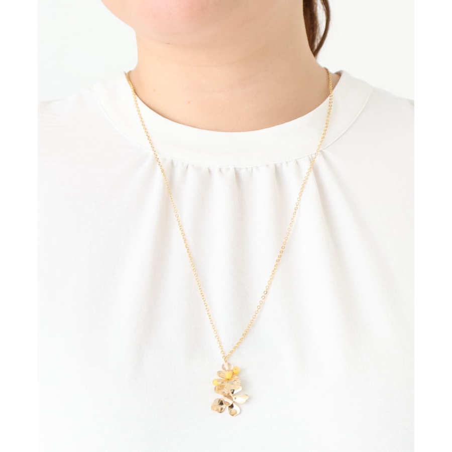 メタルカットで表現した花びらにビーズを合わせたワントップネックレス。華奢なチェーンにキラリと光るモチーフがコーディネートに大人フェミニンなアクセントを加えます。ロングタイプで縦ラインを強調し、すっきり見えを後押し。普段のお出かけから華やかなお席まで幅広く合わせて頂けるアイテムです。