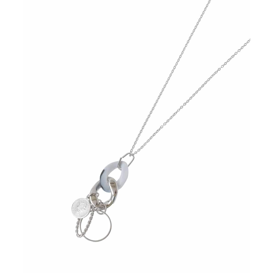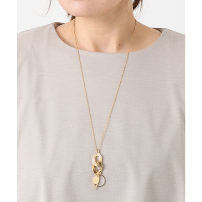 素材や形の異なるメタルモチーフを繋げたスタイリッシュなネックレス。
