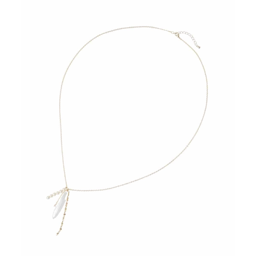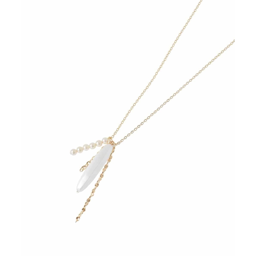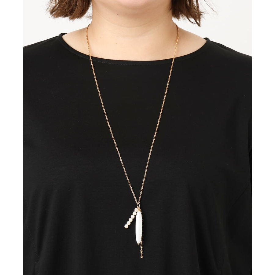 パール調パーツやストーン風のモチーフを合わせたニュアンスあるネックレス。