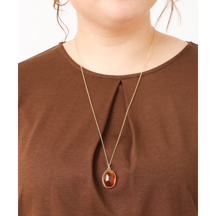 クリアなストーン調モチーフがコーディネートに抜け感を演出するネックレス。メタルパーツと組み合わせたデザインで女性らしい上品な雰囲気をプラスしました。シンプルなロングチェーンが華奢見えを演出し、スタイルアップも後押し。きれいめにはもちろん、カジュアルコーディネートにも合わせやすいおすすめのアイテムです。