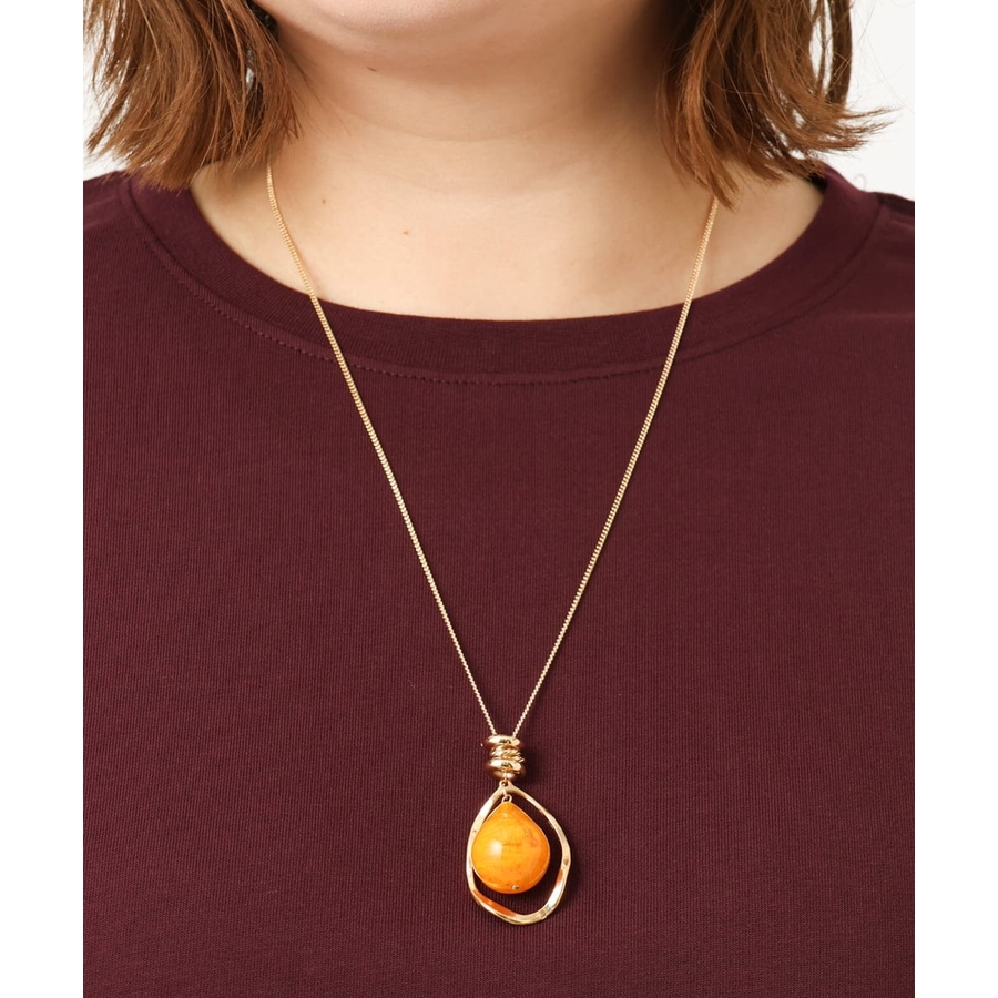 きらりと輝くロングチェーンに存在感あるワントップのデザインが着こなしのアクセントに。
