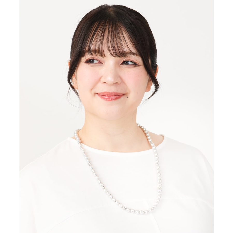 上品な光沢のフェイクパールを並べ、アクセントにキラリと光るビジューを加えました。