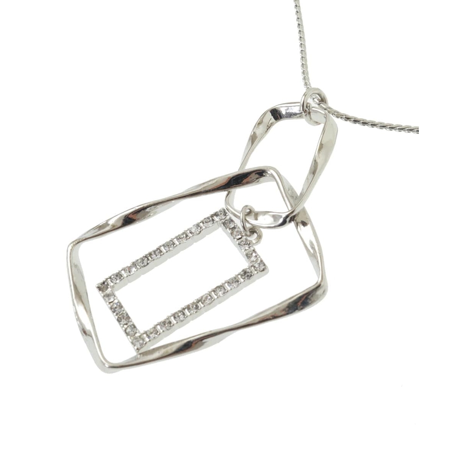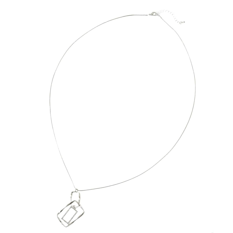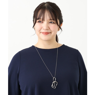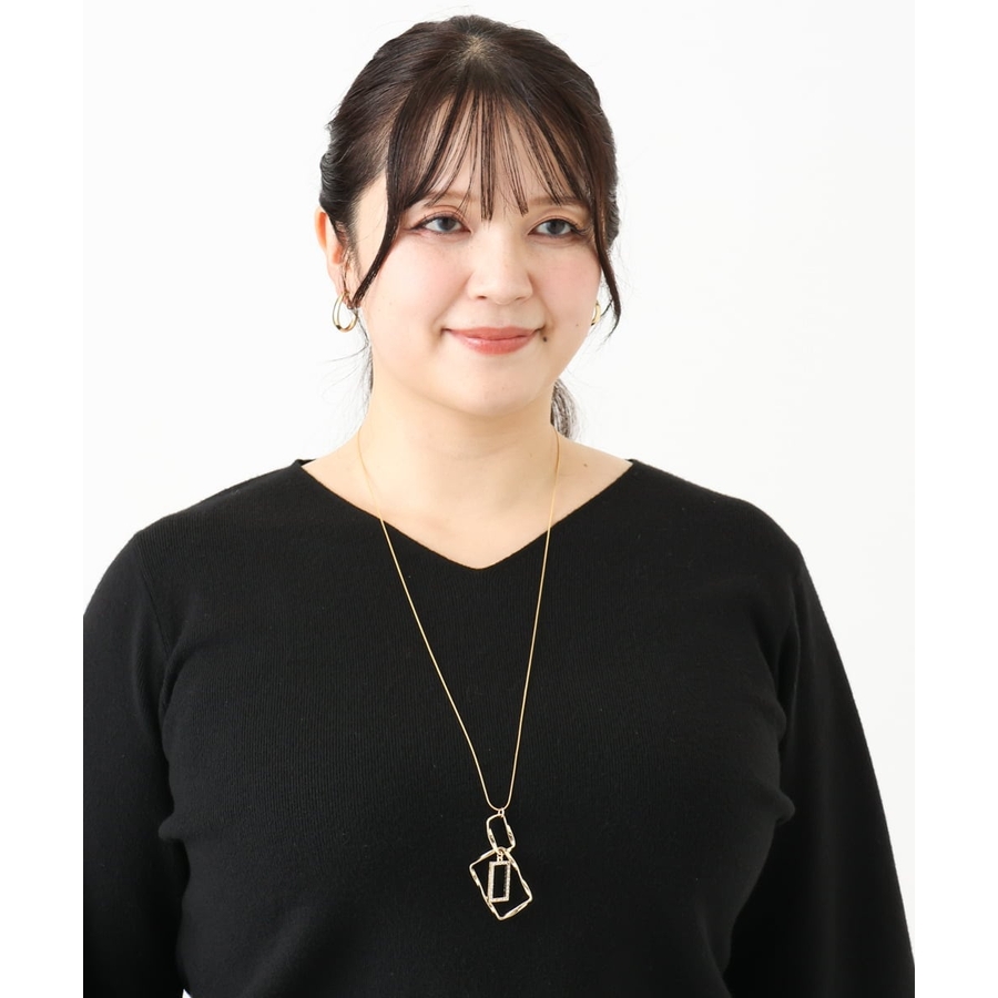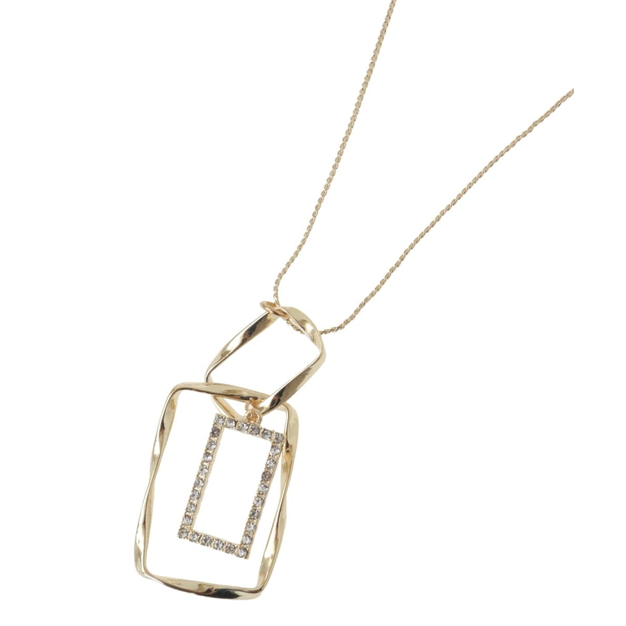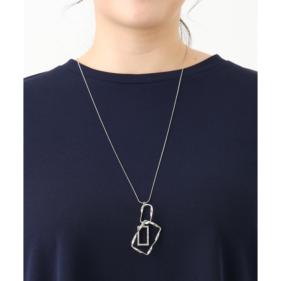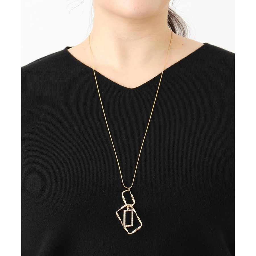 ビジューでアクセントを効かせたスクエア型の三連メタルパーツがスタイリッシュなネックレス。
