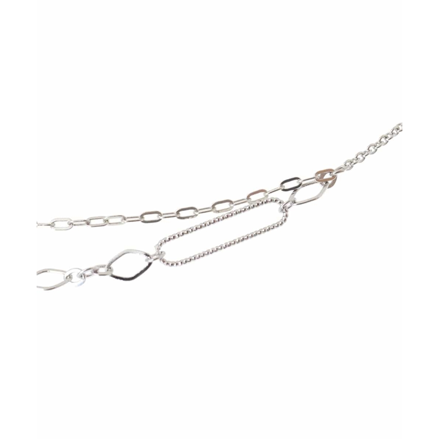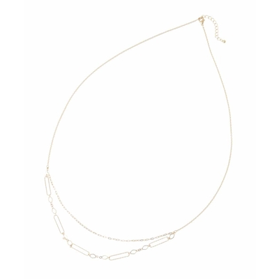 イレギュラーな形のチェーンを組み合わせた2連デザインのネックレス。太さや風合いの違いでさらに華やかさを出し、大人っぽい印象に仕上げました。ロングタイプでスタイルを選ばず、様々なシーンで活躍。カジュアルからきれいめコーデまで幅広く合わせて頂ける汎用性の高いアイテムです。 金属アレルギーをおこしにくいニッケルフリーになっています。