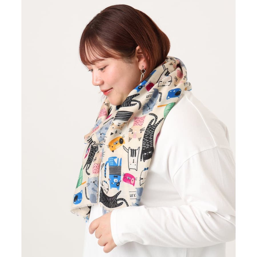 ソフトで滑らかな優しい風合が嬉しいデザインストール。愛嬌のある様々な猫モチーフを総柄デザインしたキュートなひと品です。ストールとしてはもちろん、ショールやひざ掛けなどアレンジ可能な大判サイズも嬉しいポイント。多色使いでスタイリングのアクセントとしても重宝する今季おすすめのアイテムです。